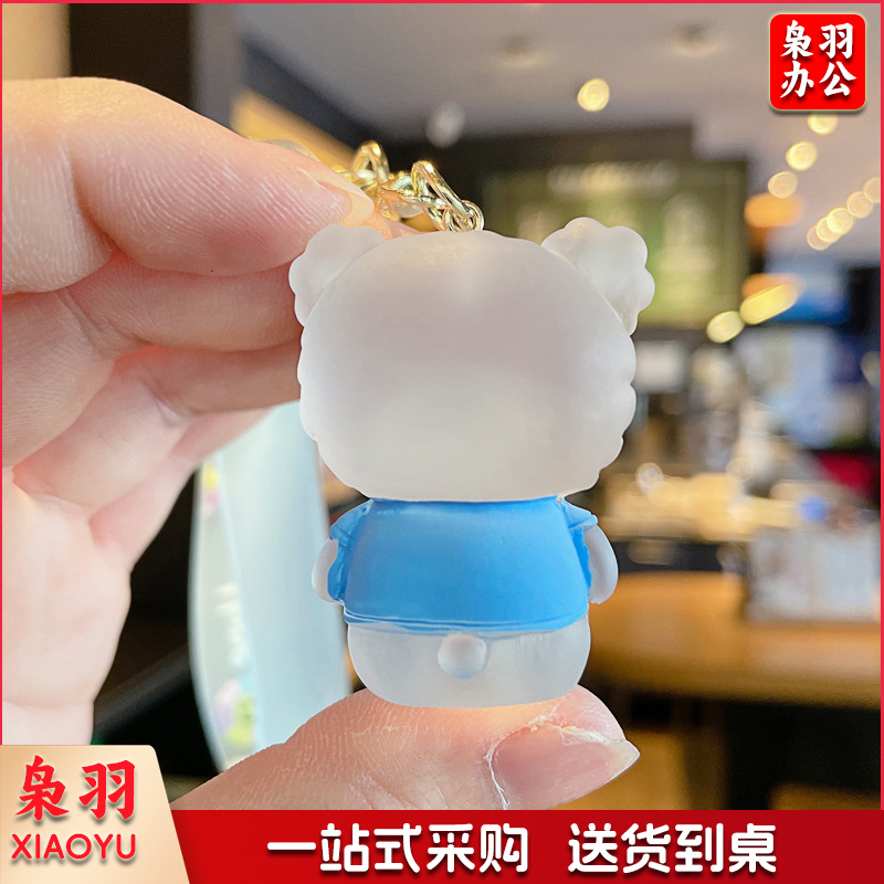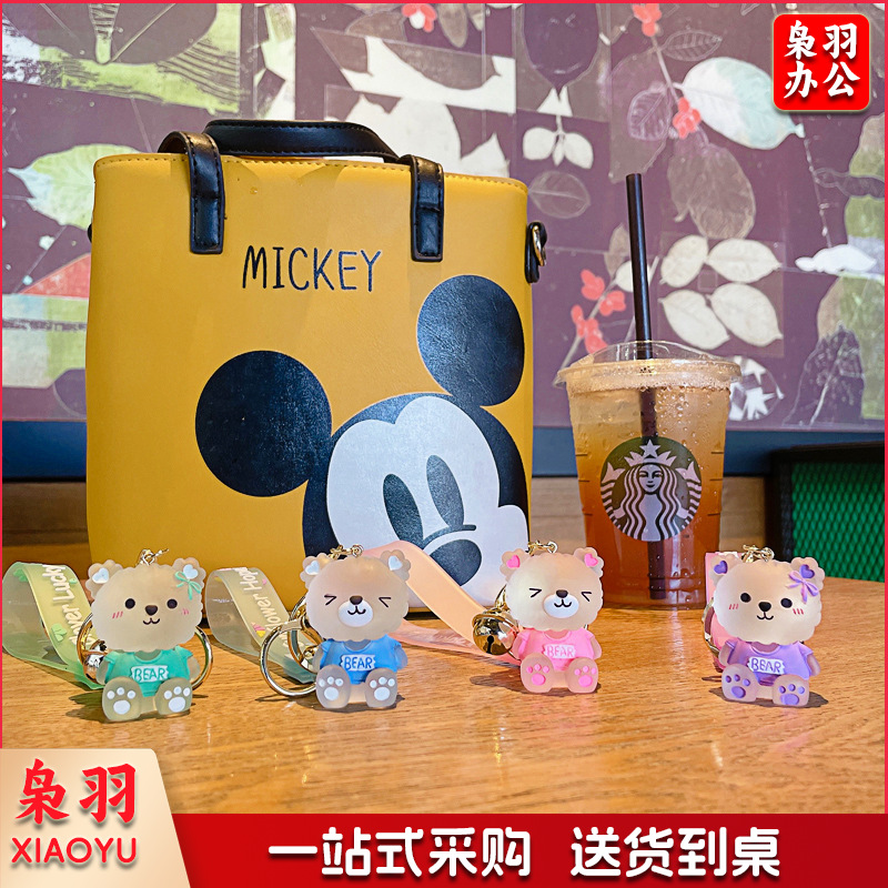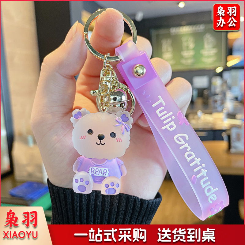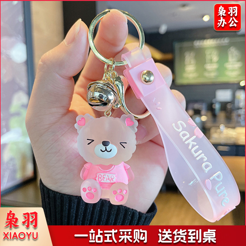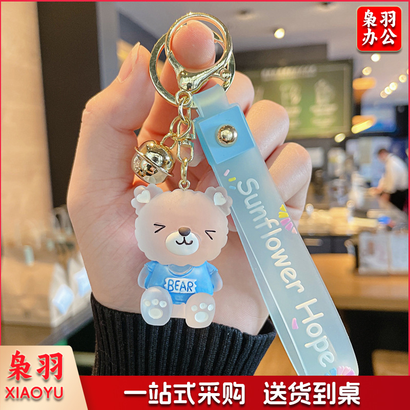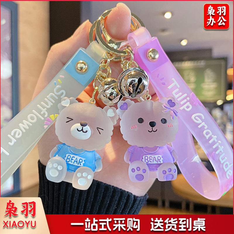 韩国外贸热销坐姿水晶小熊钥匙扣可爱树脂小熊书包挂件创意小礼品独立OPP包装