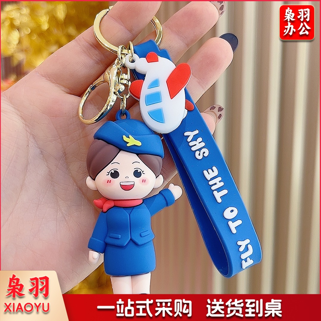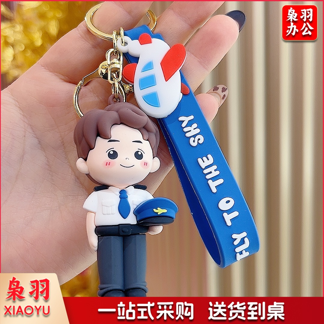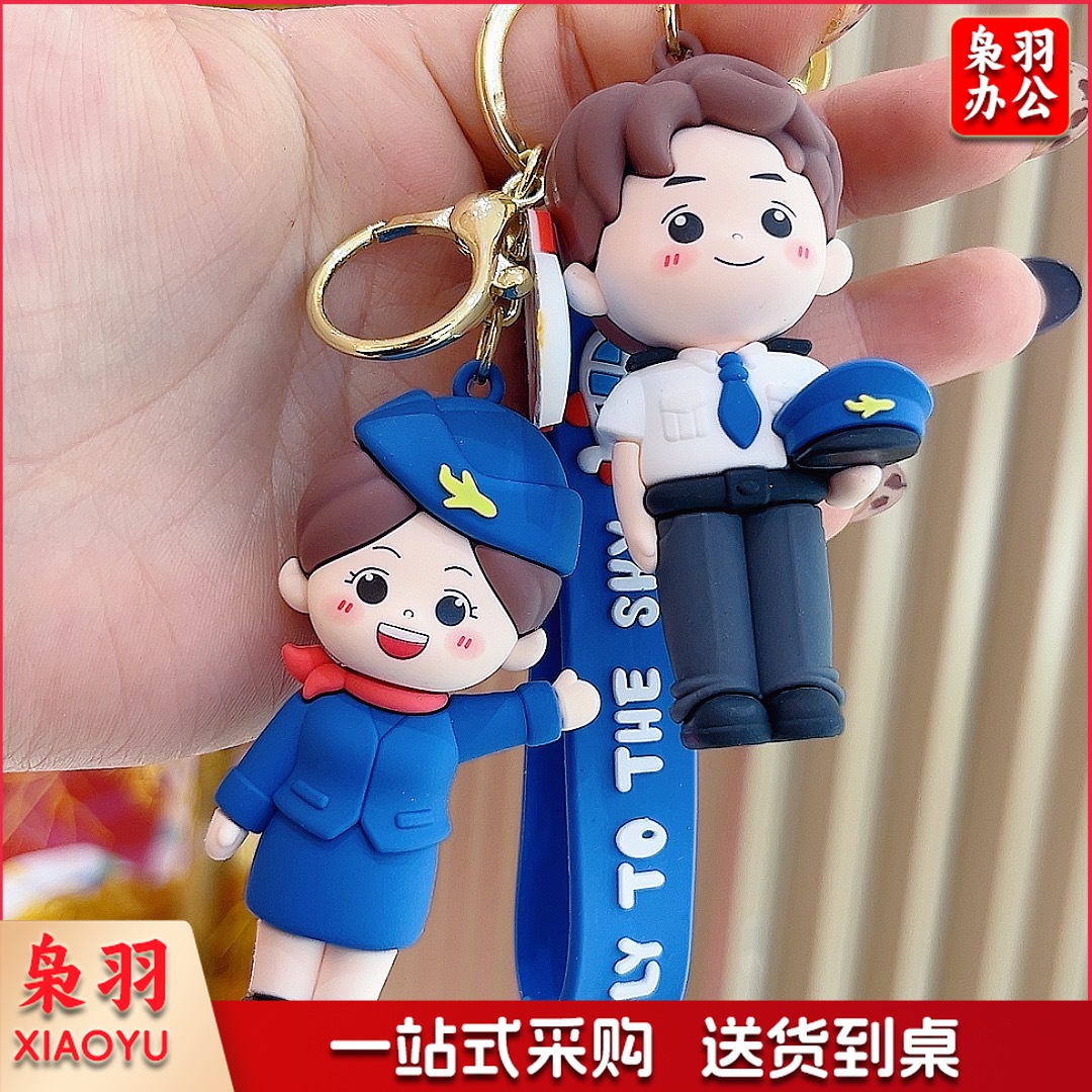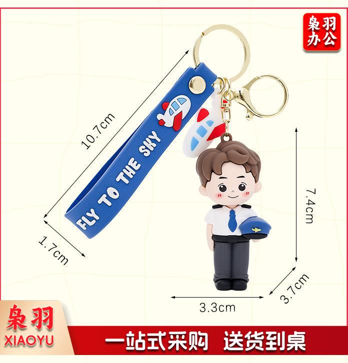 创意硅胶飞行员钥匙扣机长空姐公仔包包挂件航空纪念品小商品小礼物
