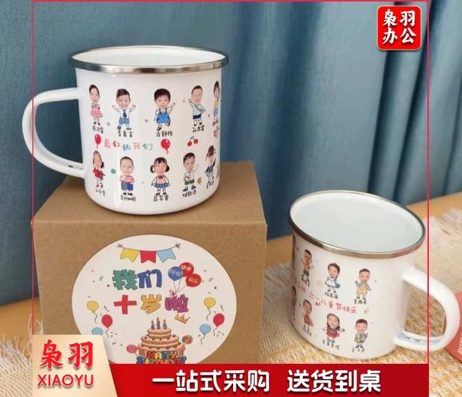 马克杯幼儿园卡通头像抠图儿童自画像搪瓷杯毕业班礼物纪念杯子(200起定制)230ml