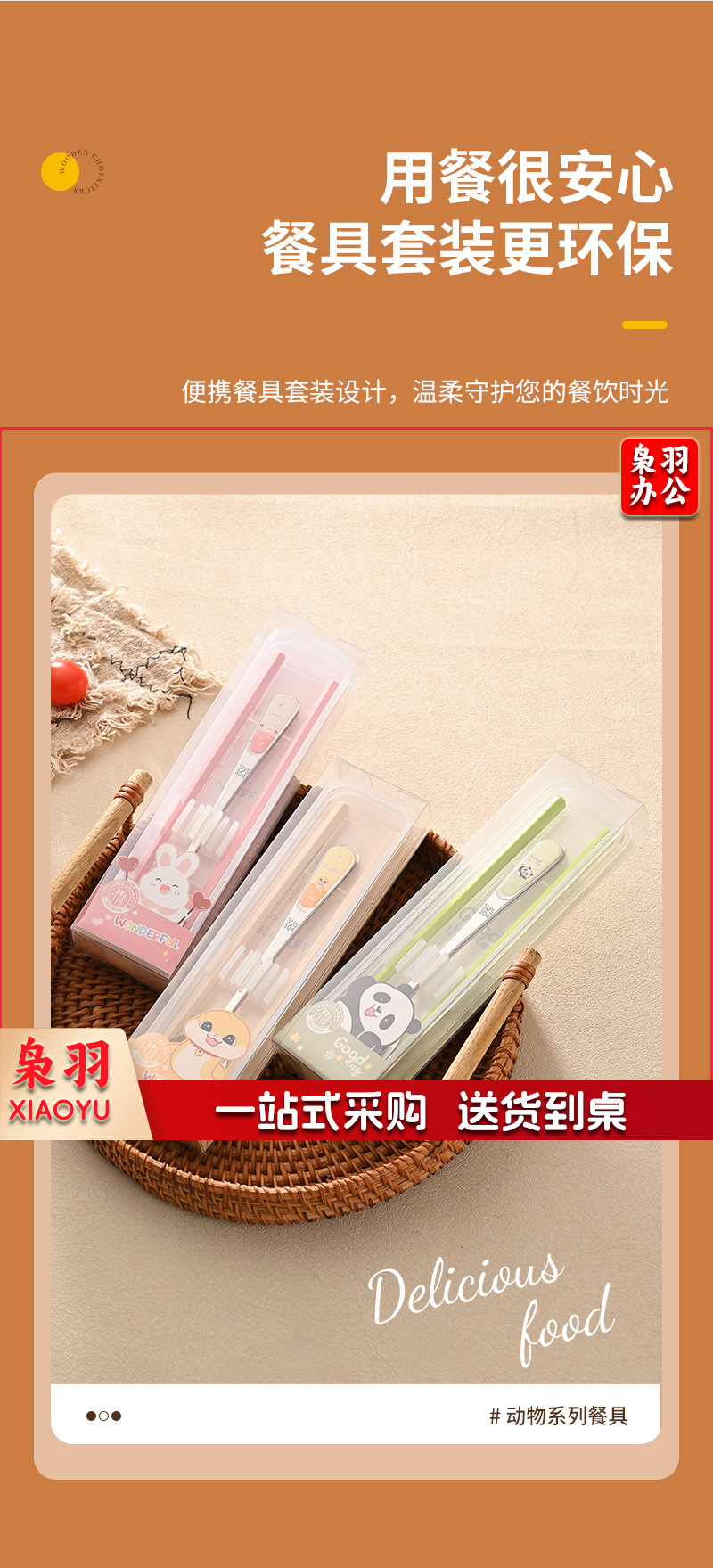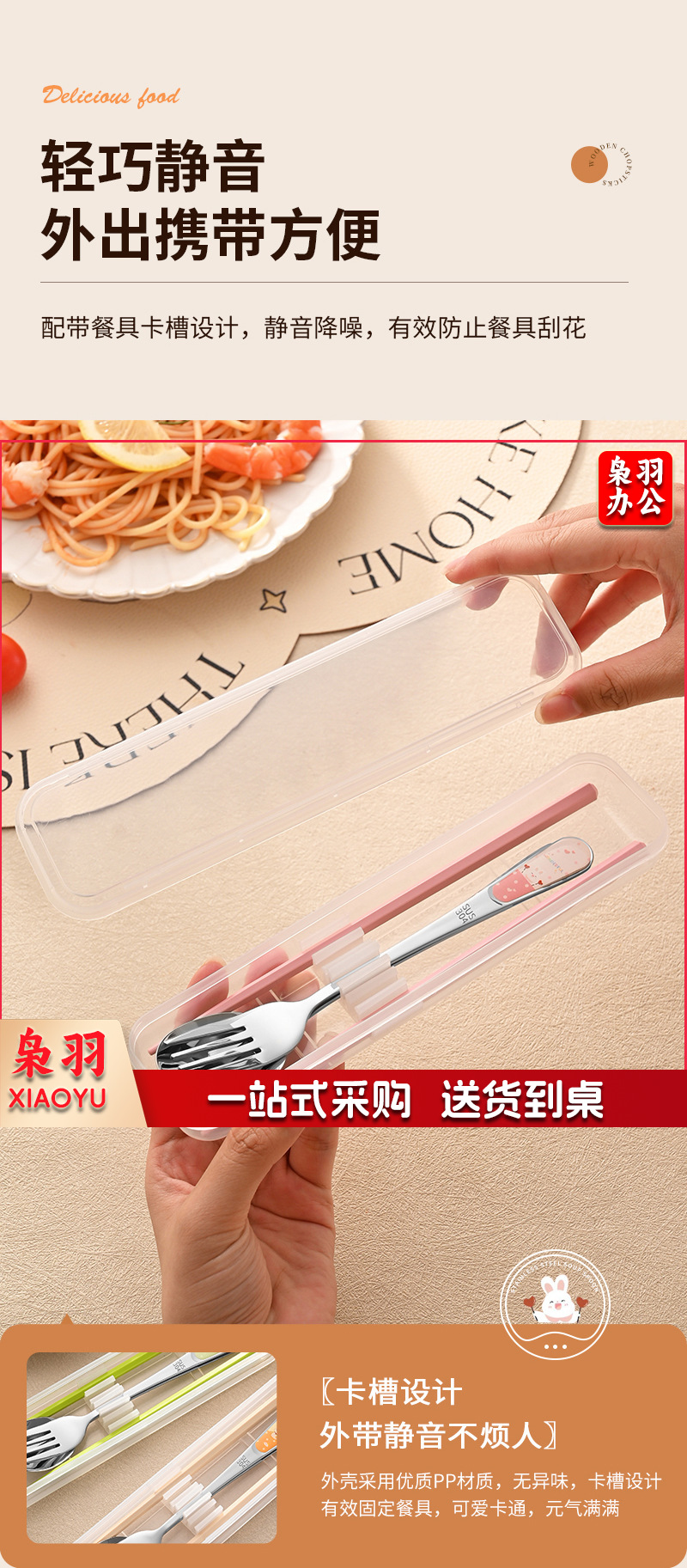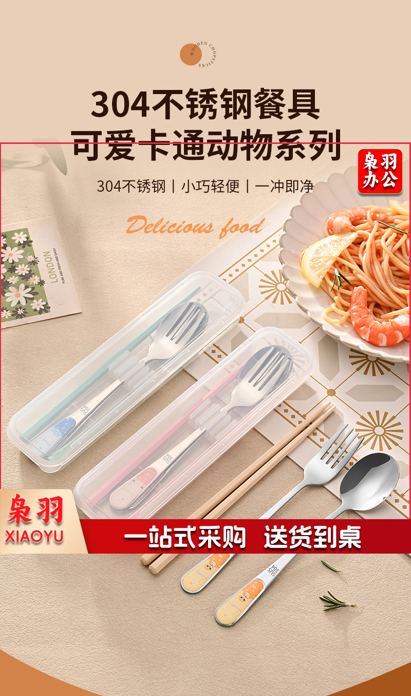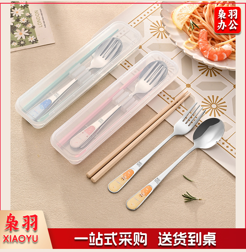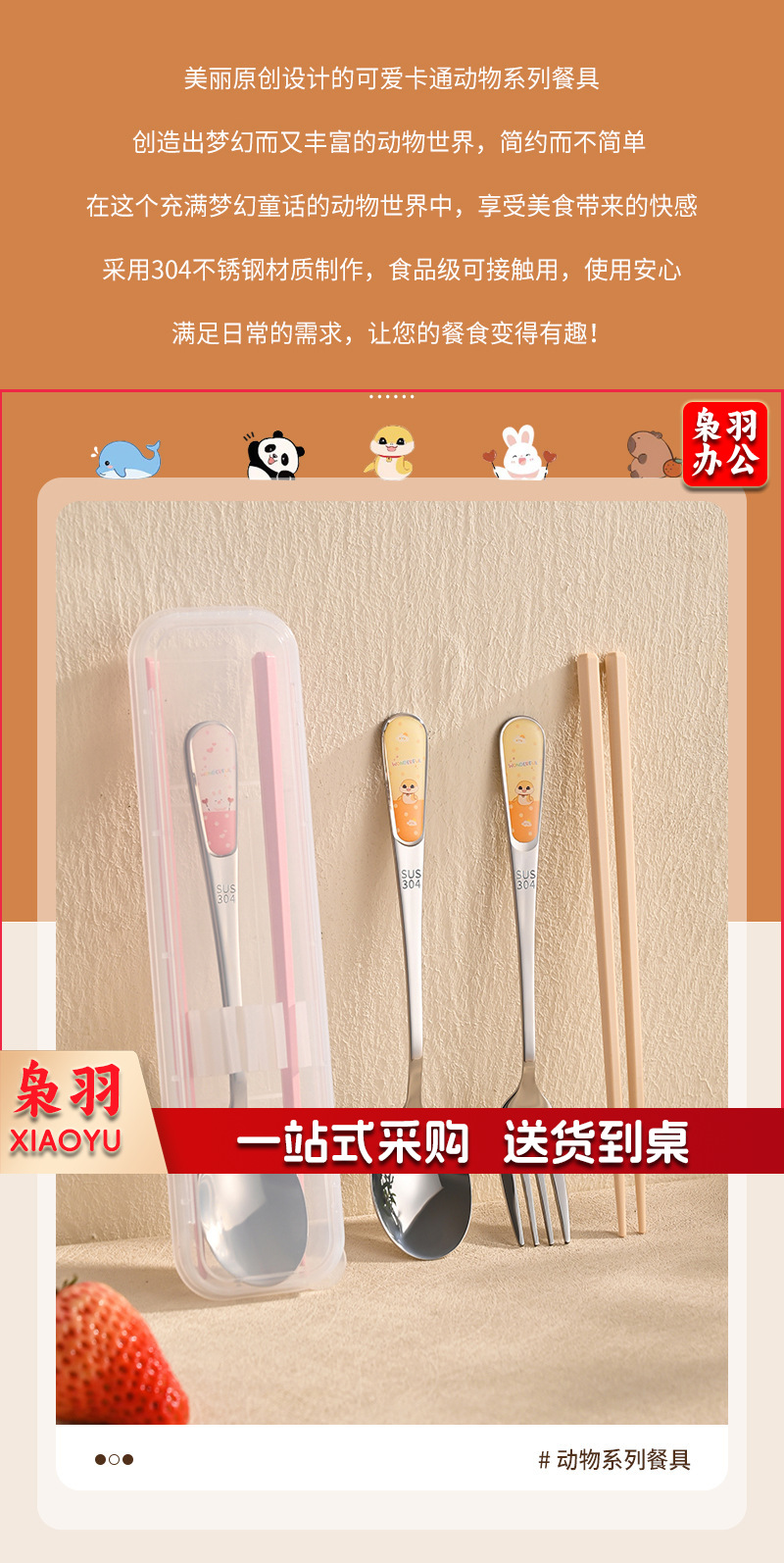 304不锈钢便携式餐具儿童学生勺子叉子筷子勺筷套装卡通( 熊猫绿(勺筷))