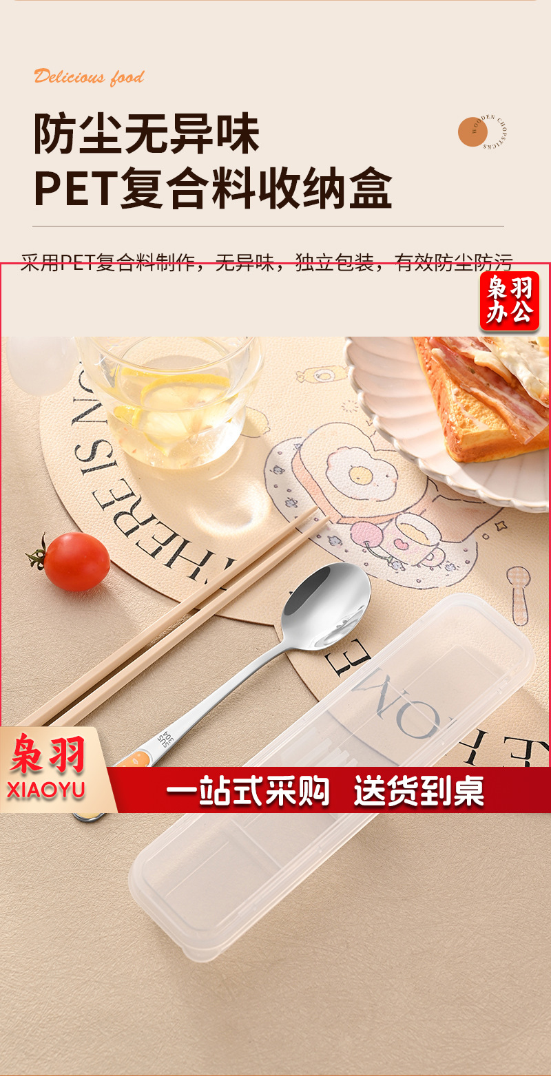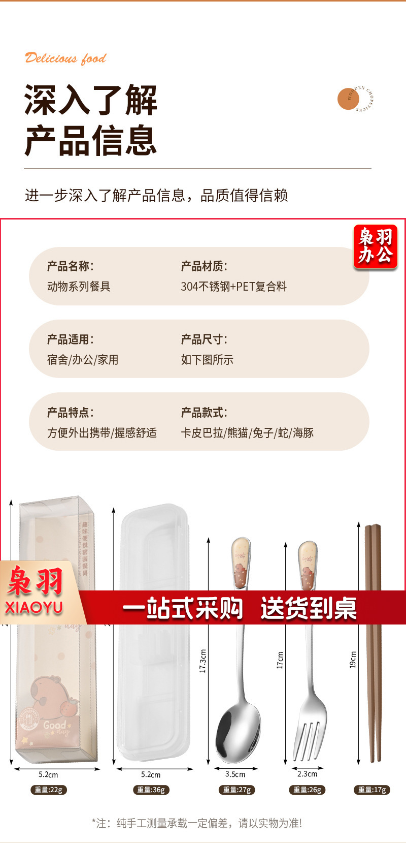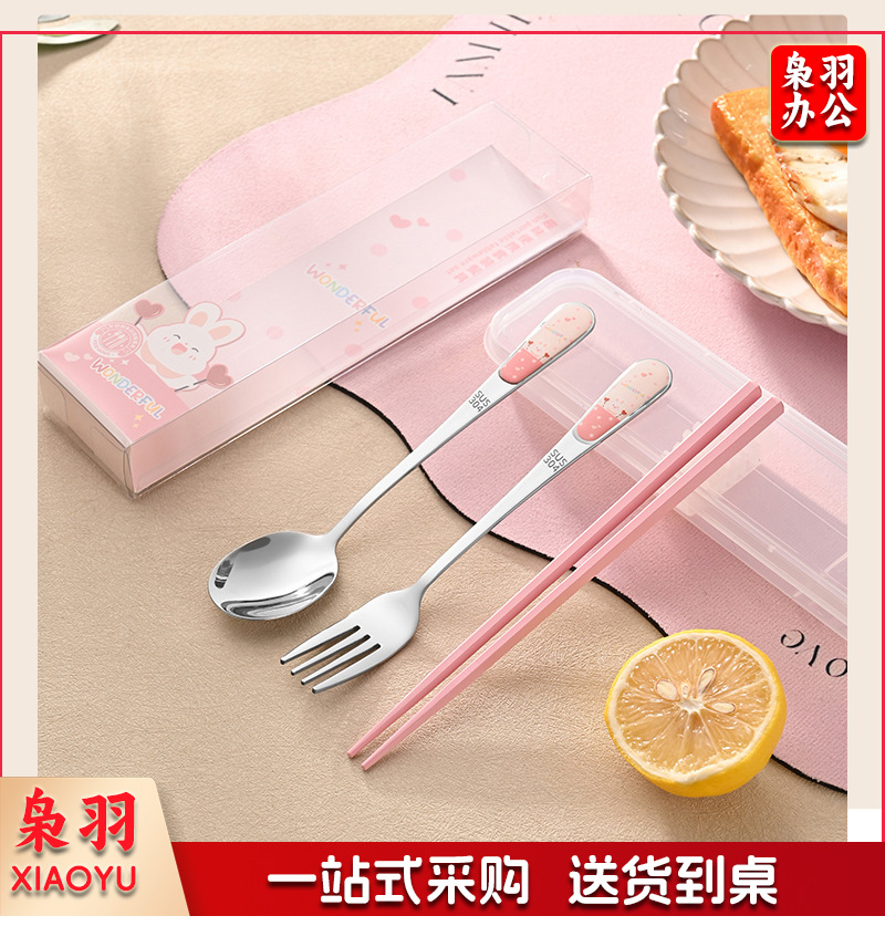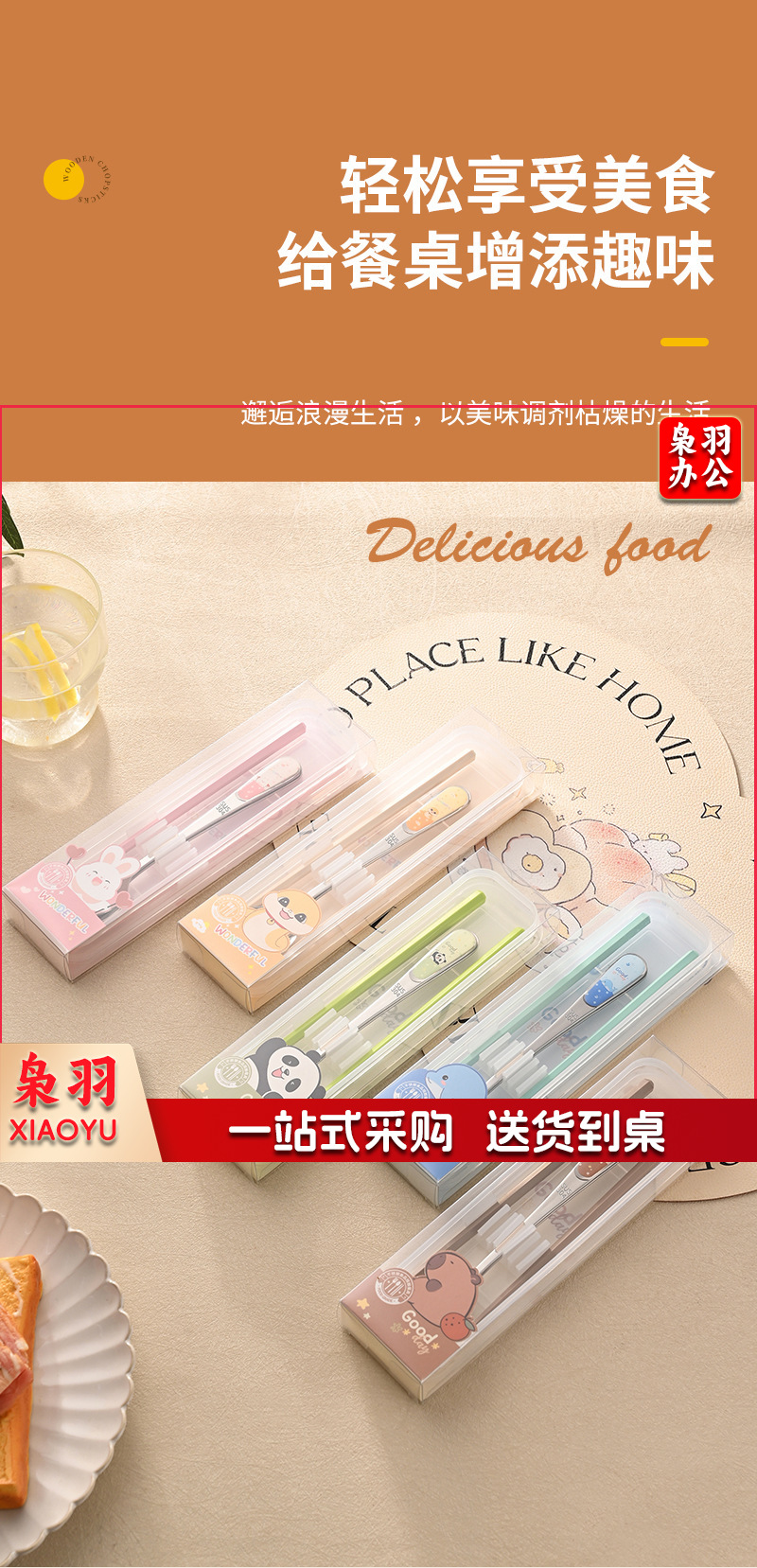 304不锈钢便携式餐具儿童学生勺子叉子筷子勺筷套装卡通( 熊猫绿(勺筷))