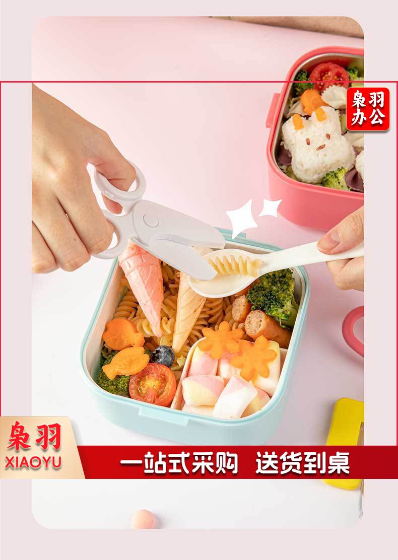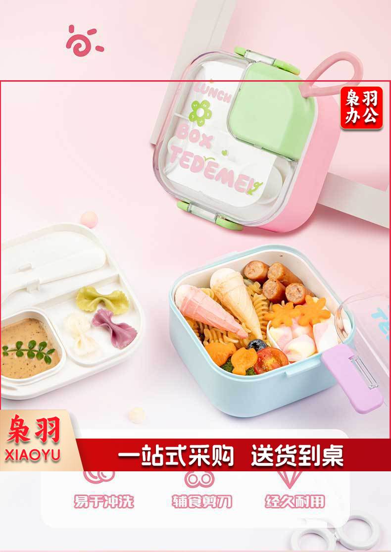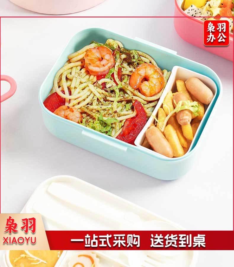 可爱轻食饭盒微波炉专用分格不串味水果减脂餐盒儿童便当盒带餐具(PP长方粉色)