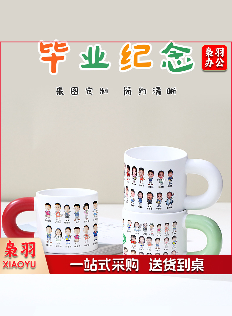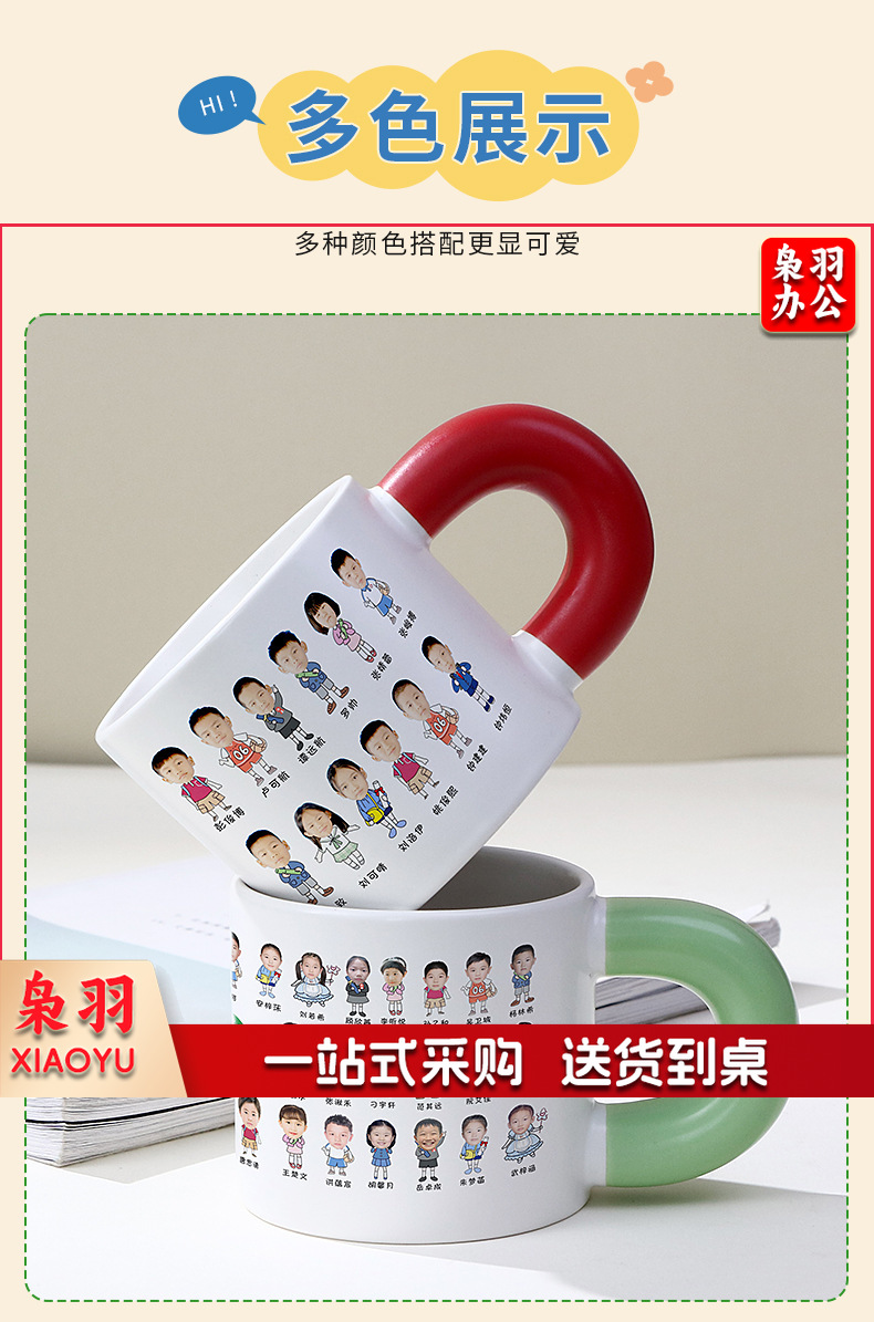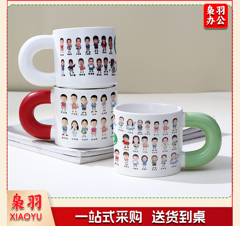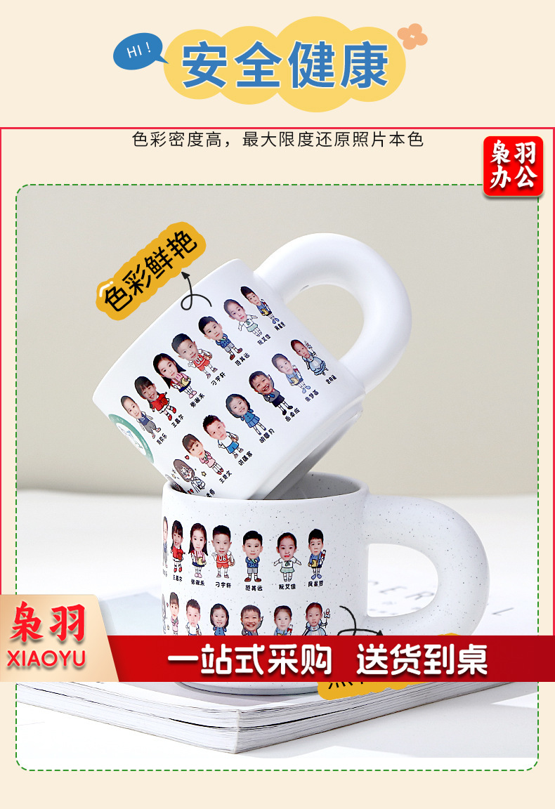 幼儿园毕业季礼品杯子陶瓷马克杯彩色头像儿童节全班礼物(301-400ml) 白色胖胖杯(30个起订)