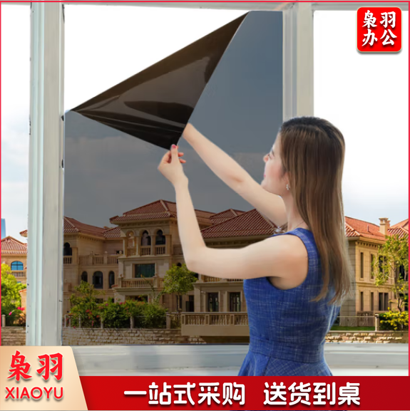 玻璃贴纸隔热膜单向透视防晒遮光窗户遮阳膜防窥隐私 黑灰60cm*2m