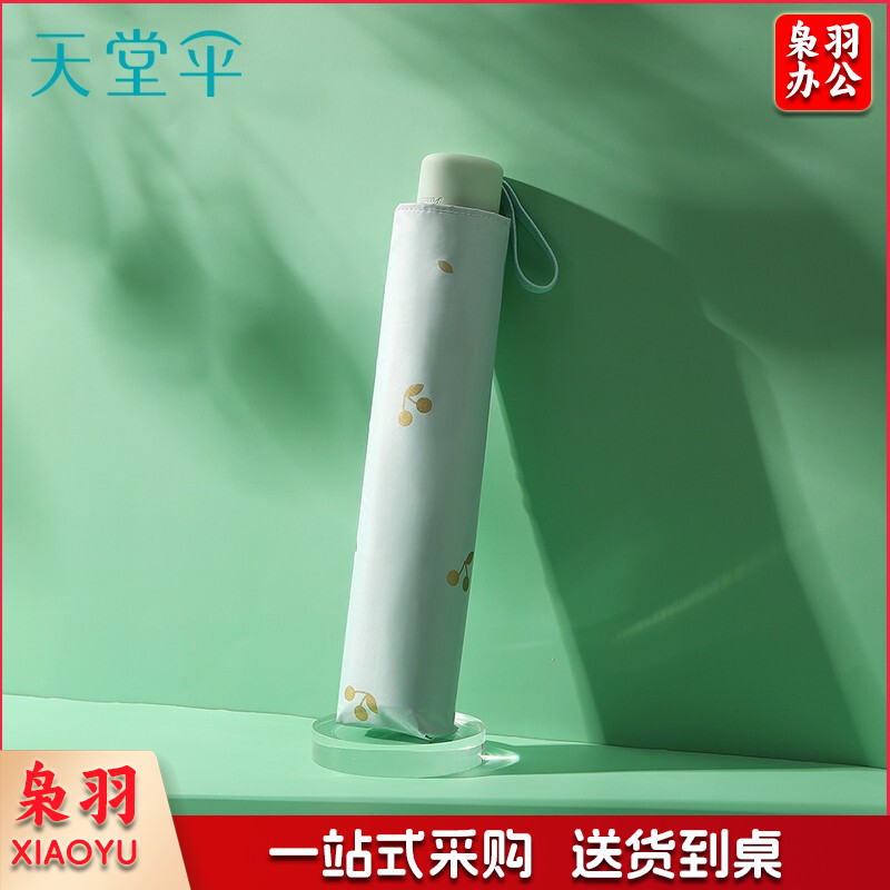 天堂伞 便携黑胶遮阳太阳伞防晒防紫外线三折叠雨伞女晴雨两用 30750EVIP三折琳琅 粉绿