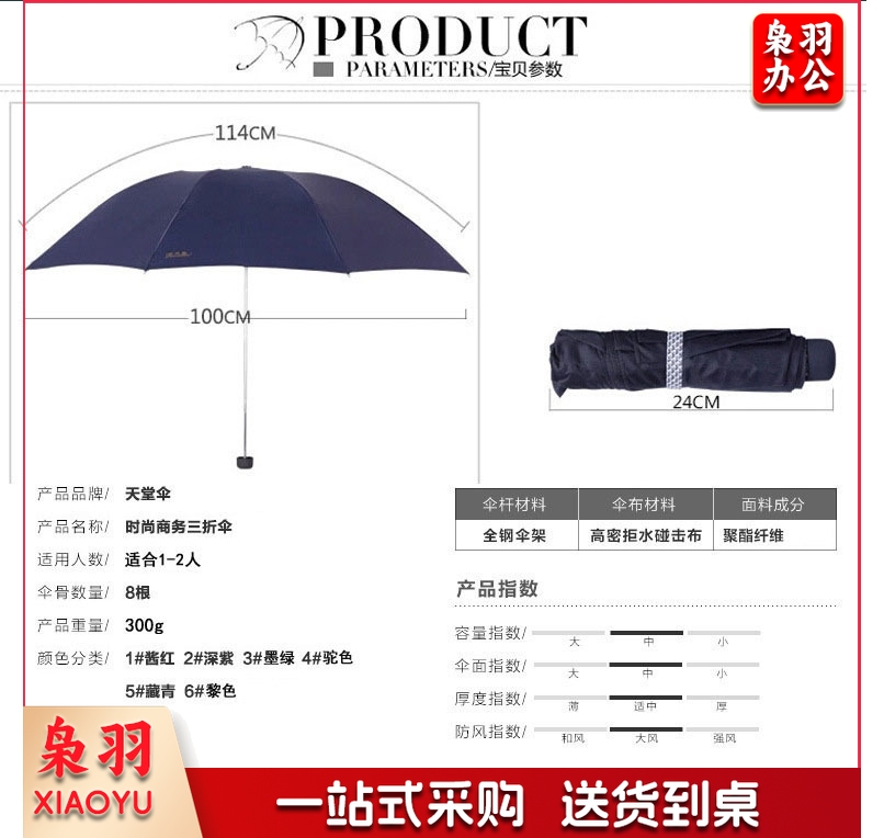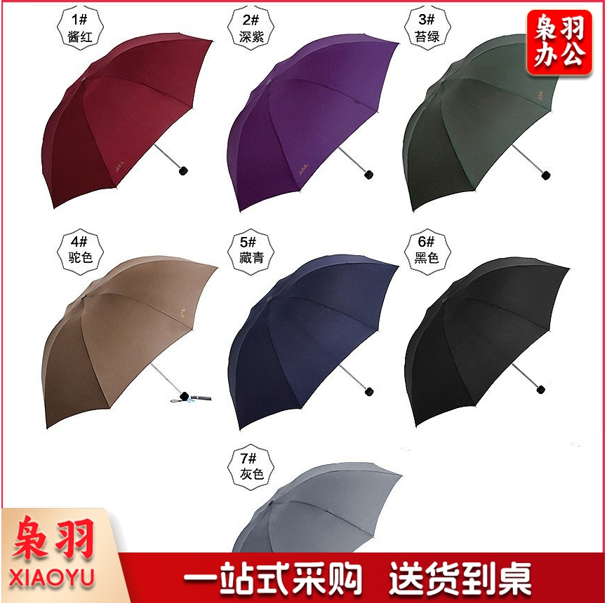 天堂伞强拒水三折叠加固钢骨纯色男士雨伞简约商务广告伞logo印刷