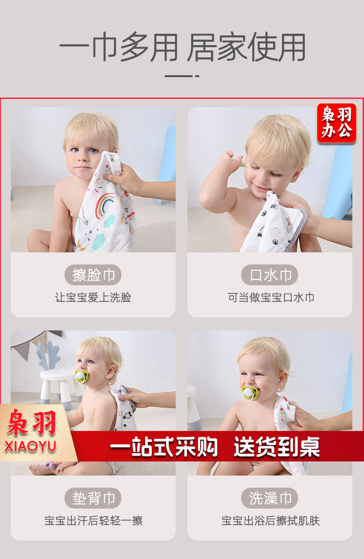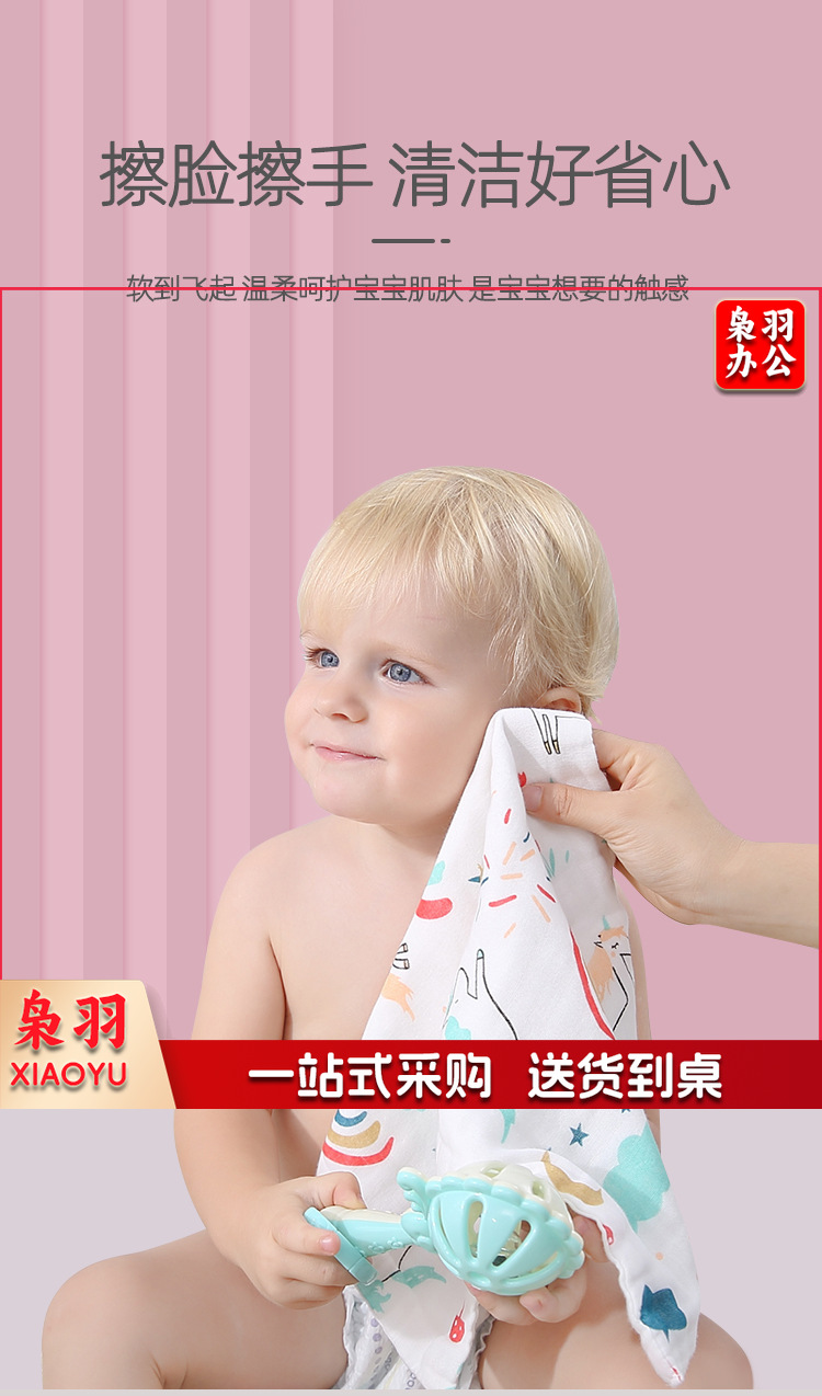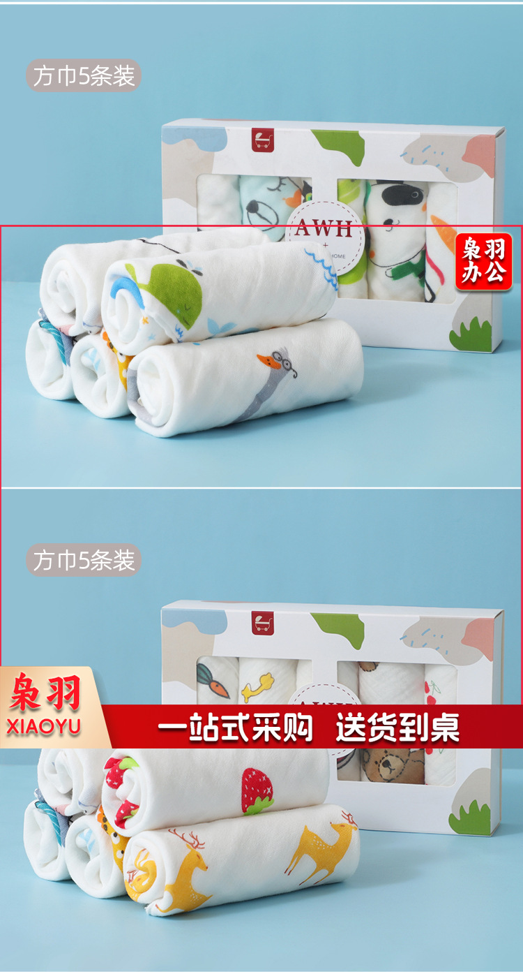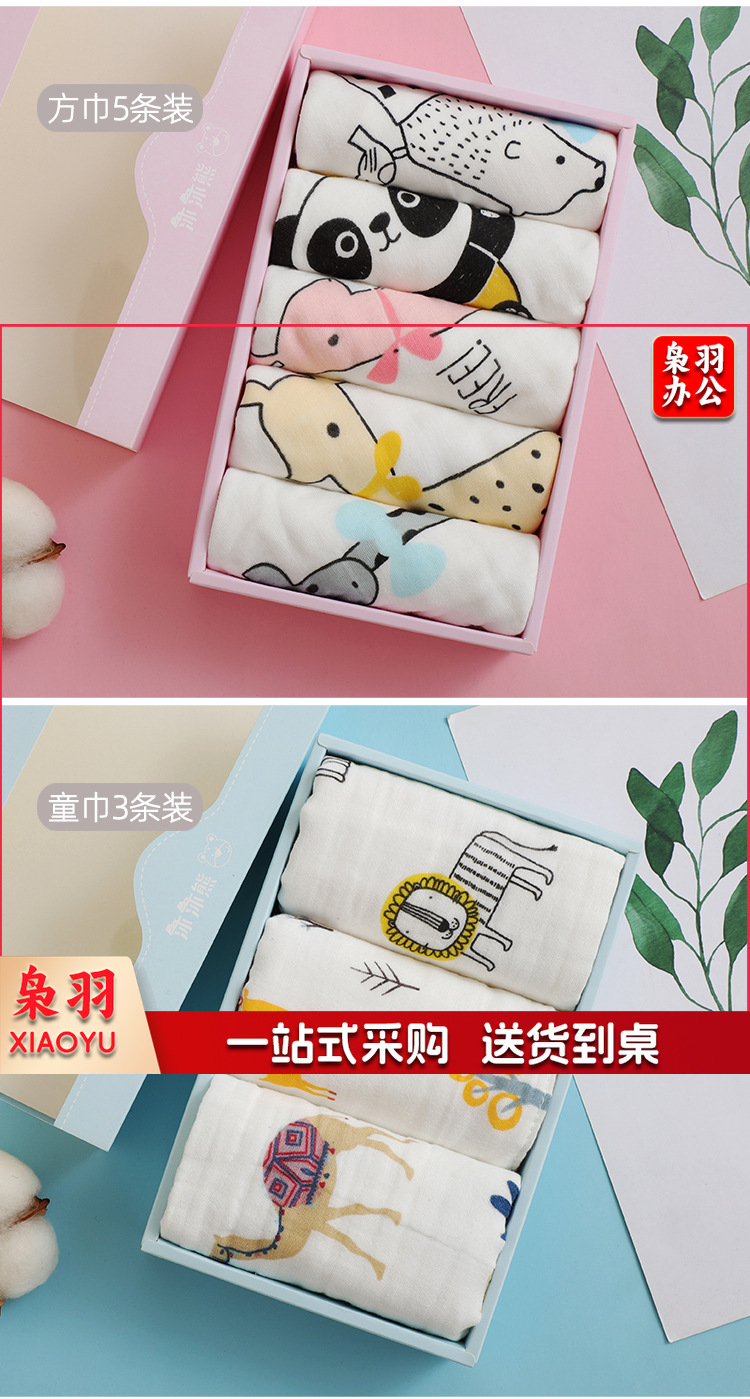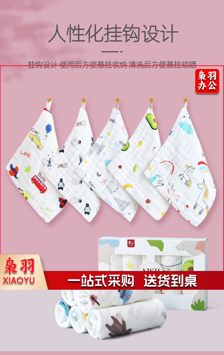 六层纯棉宝宝口水巾婴儿a类高密方巾纱布手帕吸水卡通儿童小毛巾( 奶牛25*50cm)