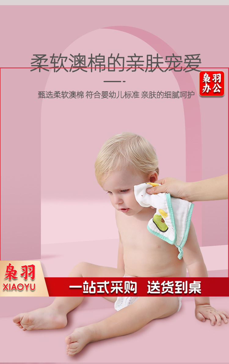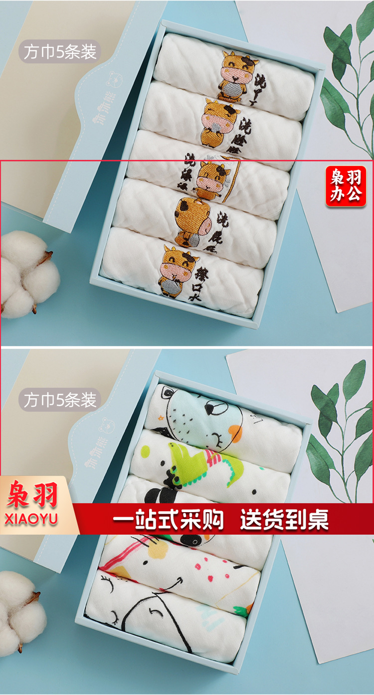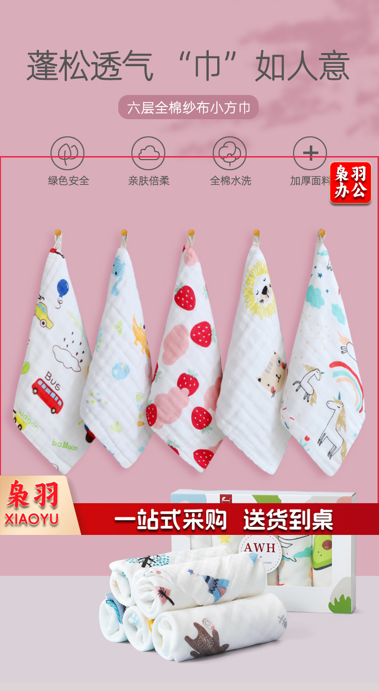 六层纯棉宝宝口水巾婴儿a类高密方巾纱布手帕吸水卡通儿童小毛巾( 奶牛25*50cm)