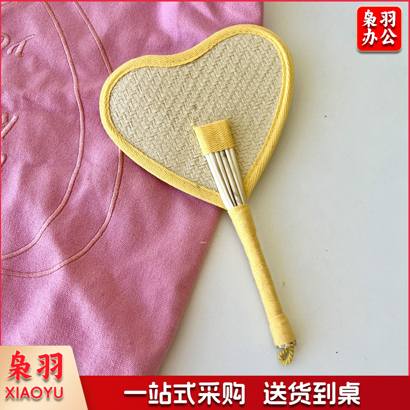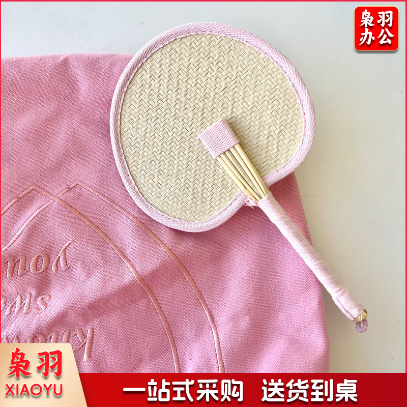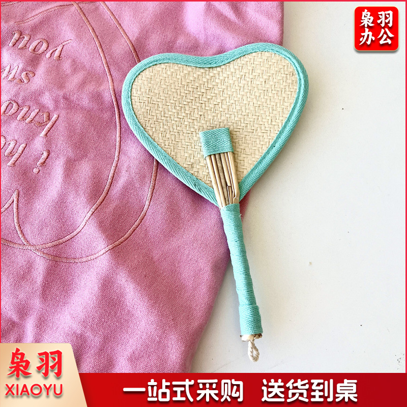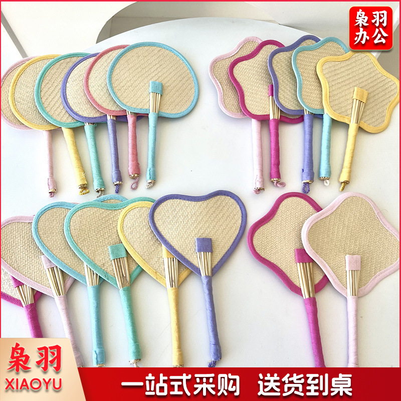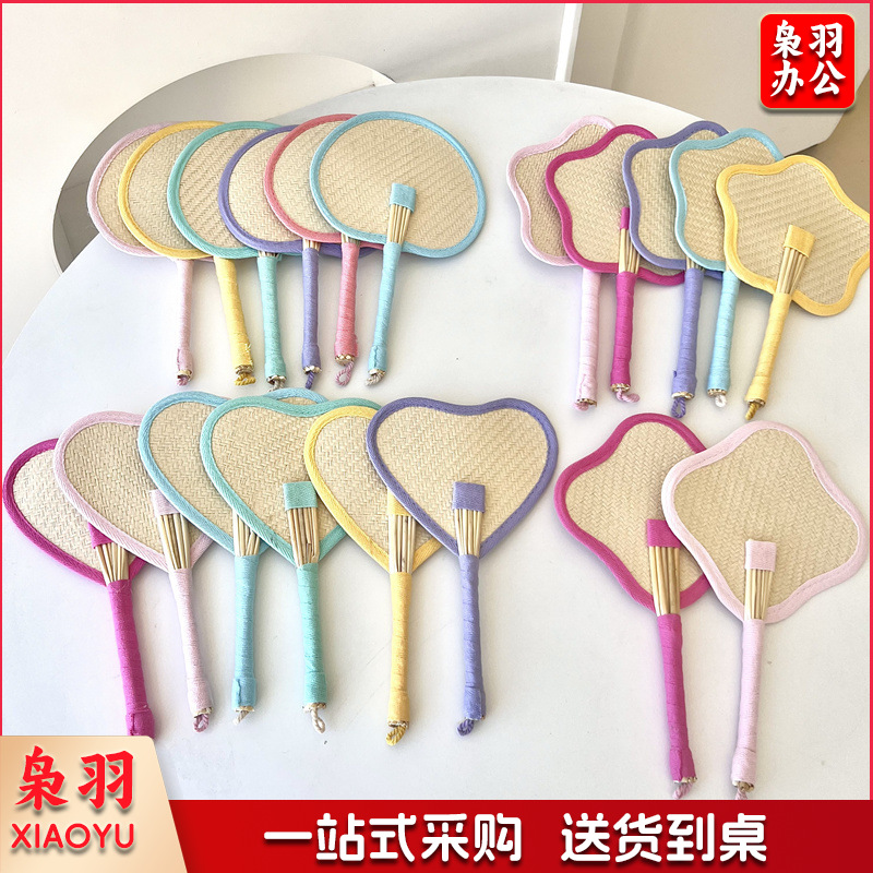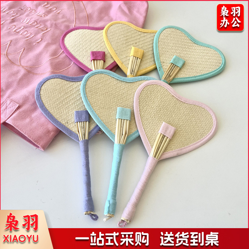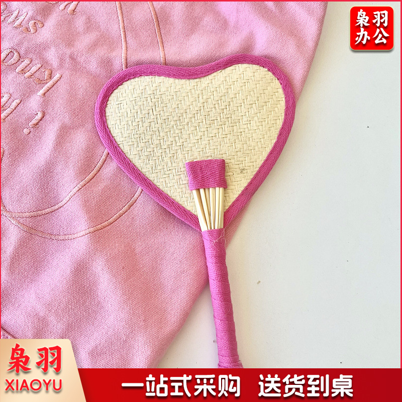 小红书同款夏日草编蒲扇麦秆便携式手摇蒲扇可爱多巴胺扇风少女心( 粉色爱心草编裸扇)