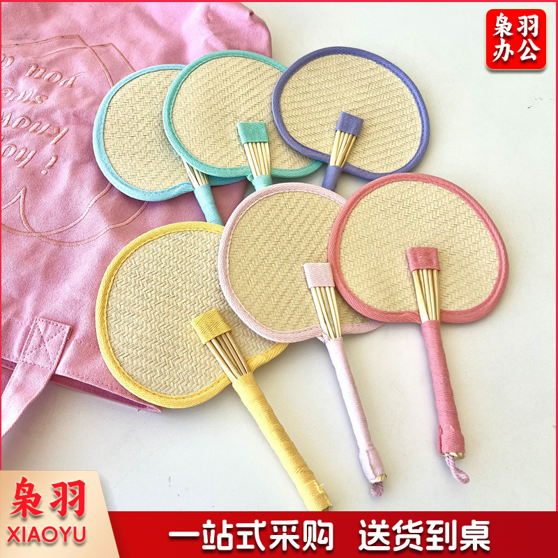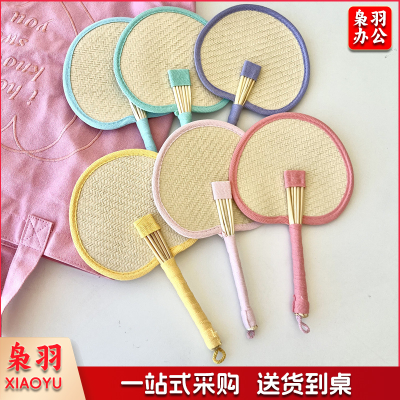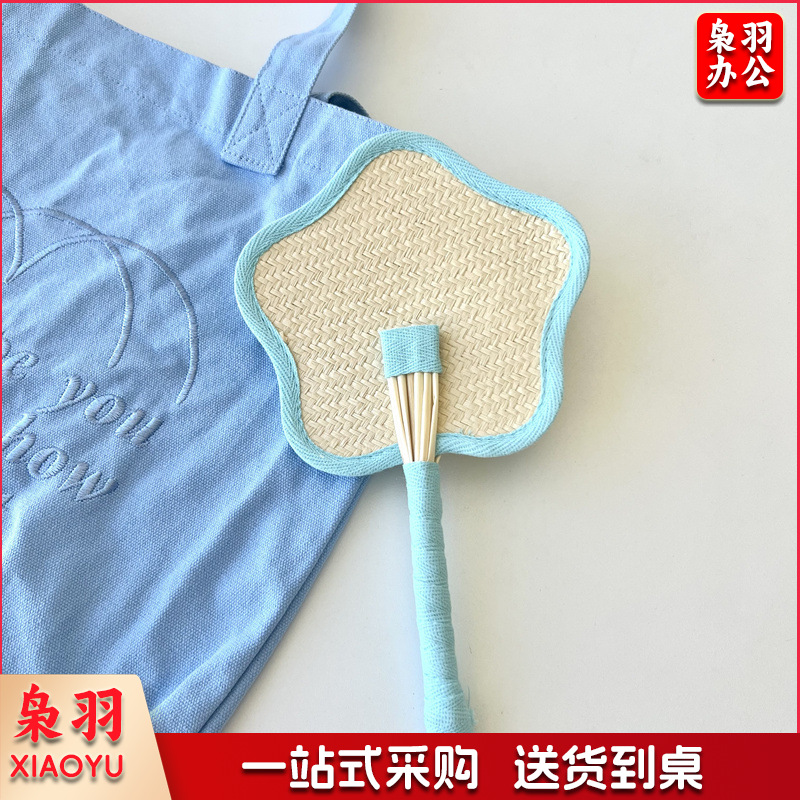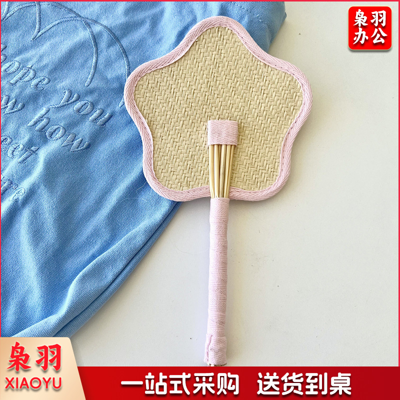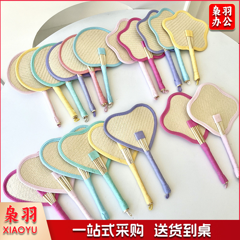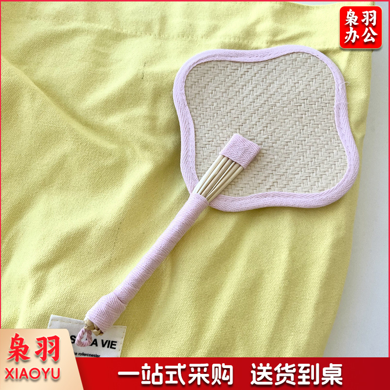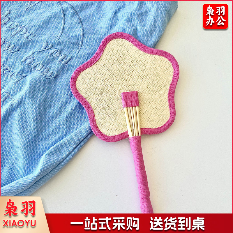 小红书同款夏日草编蒲扇麦秆便携式手摇蒲扇可爱多巴胺扇风少女心( 粉色爱心草编裸扇)