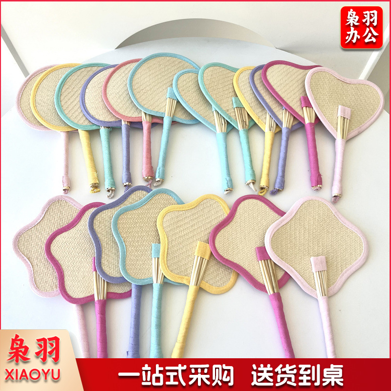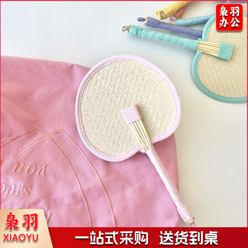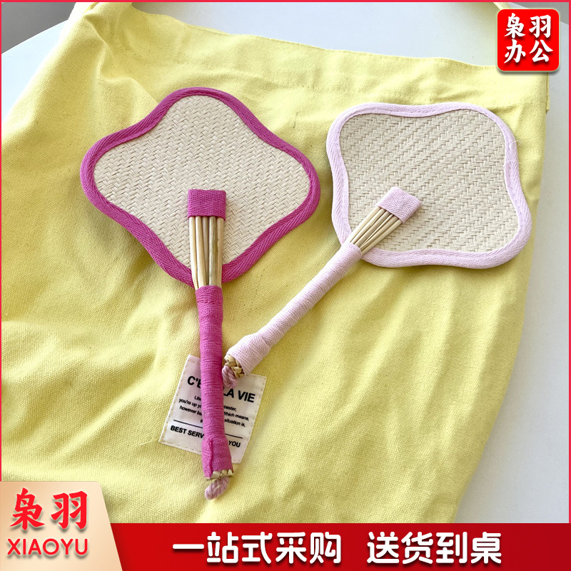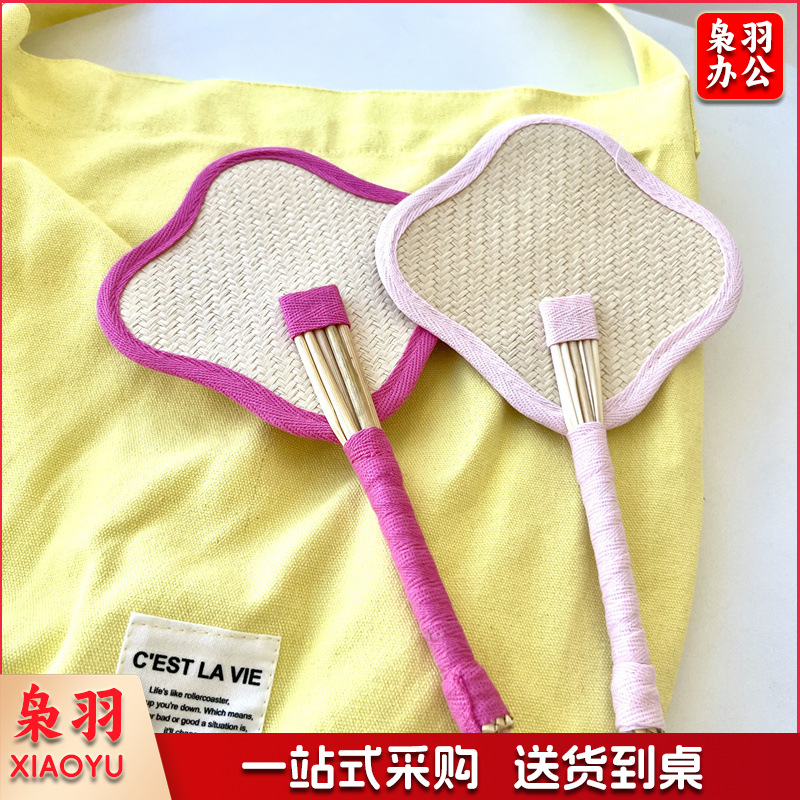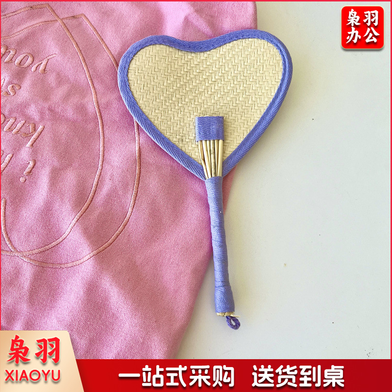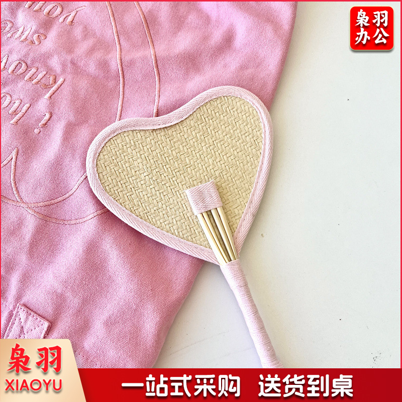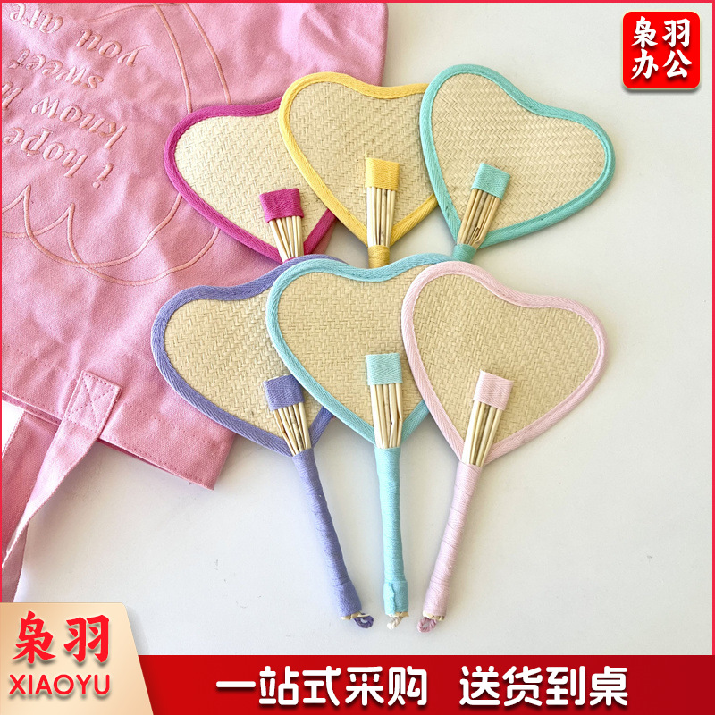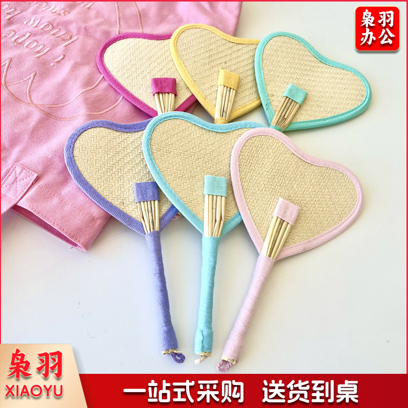 小红书同款夏日草编蒲扇麦秆便携式手摇蒲扇可爱多巴胺扇风少女心( 粉色爱心草编裸扇)
