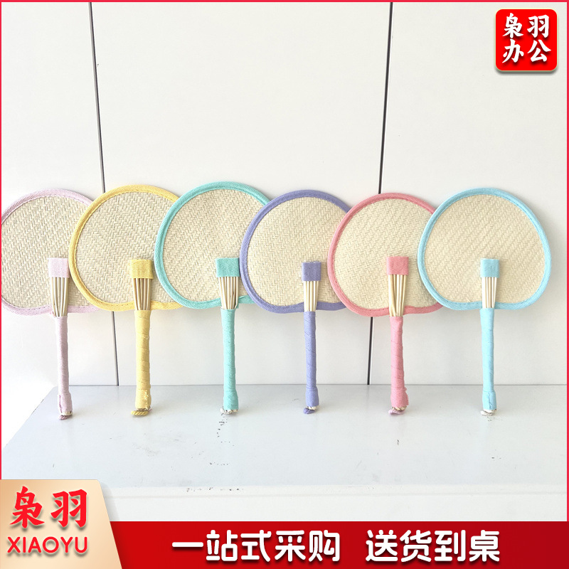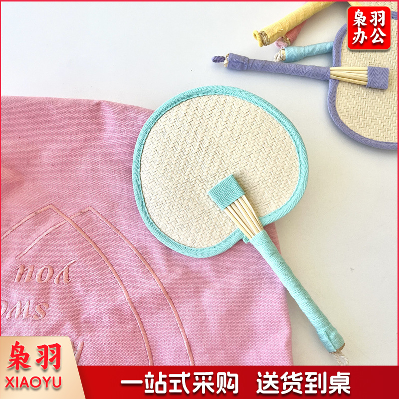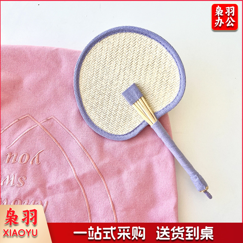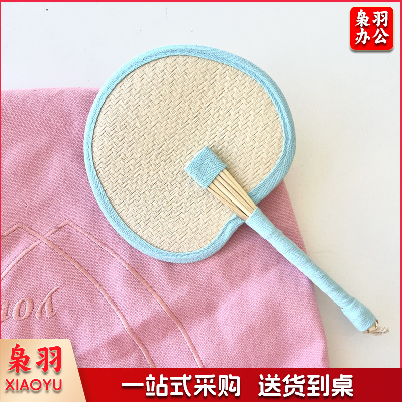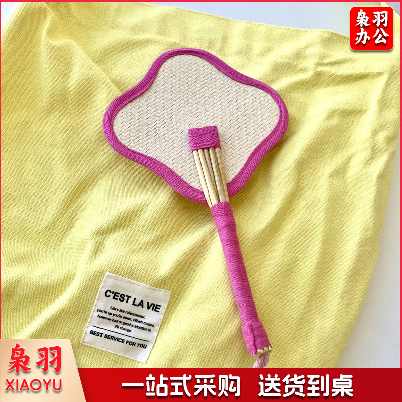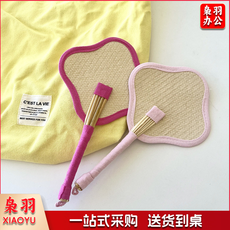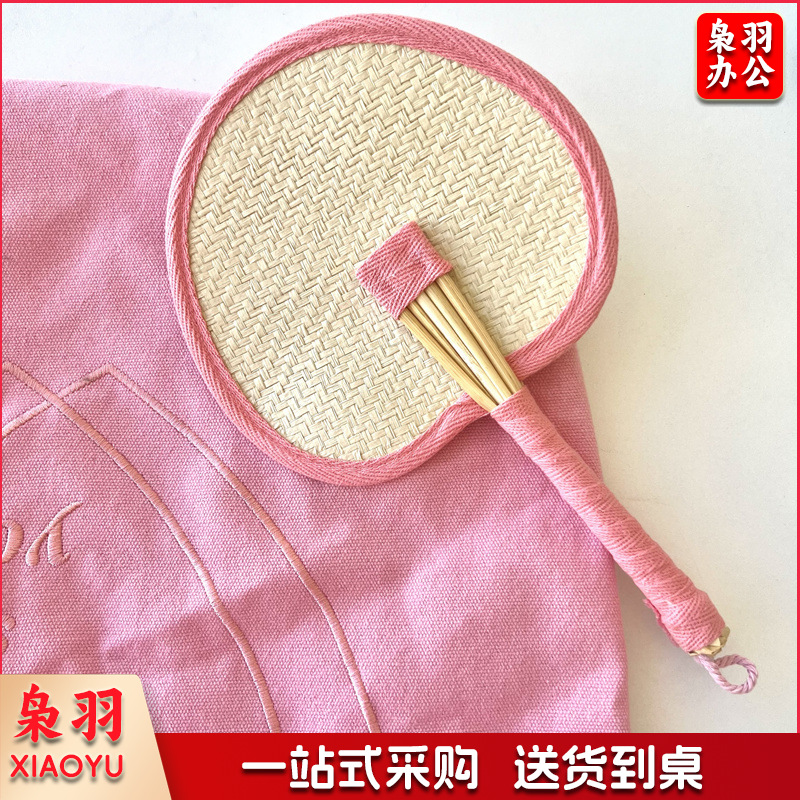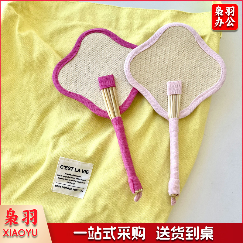 小红书同款夏日草编蒲扇麦秆便携式手摇蒲扇可爱多巴胺扇风少女心( 粉色爱心草编裸扇)