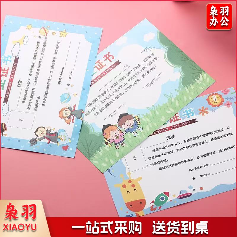 烫金幼儿园毕业证书离园纪念册大班儿童幼儿结业证书留念册封面(12K横版粉色皮质毕业证书外壳+A4内页)