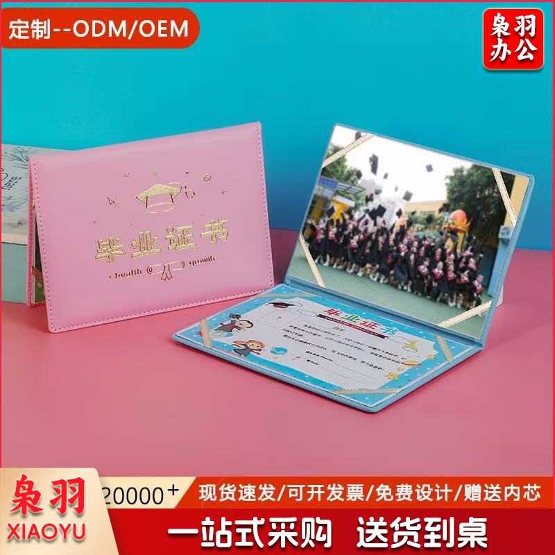 烫金幼儿园毕业证书离园纪念册大班儿童幼儿结业证书留念册封面(12K横版蓝色皮质结业证书外壳+A4内页)