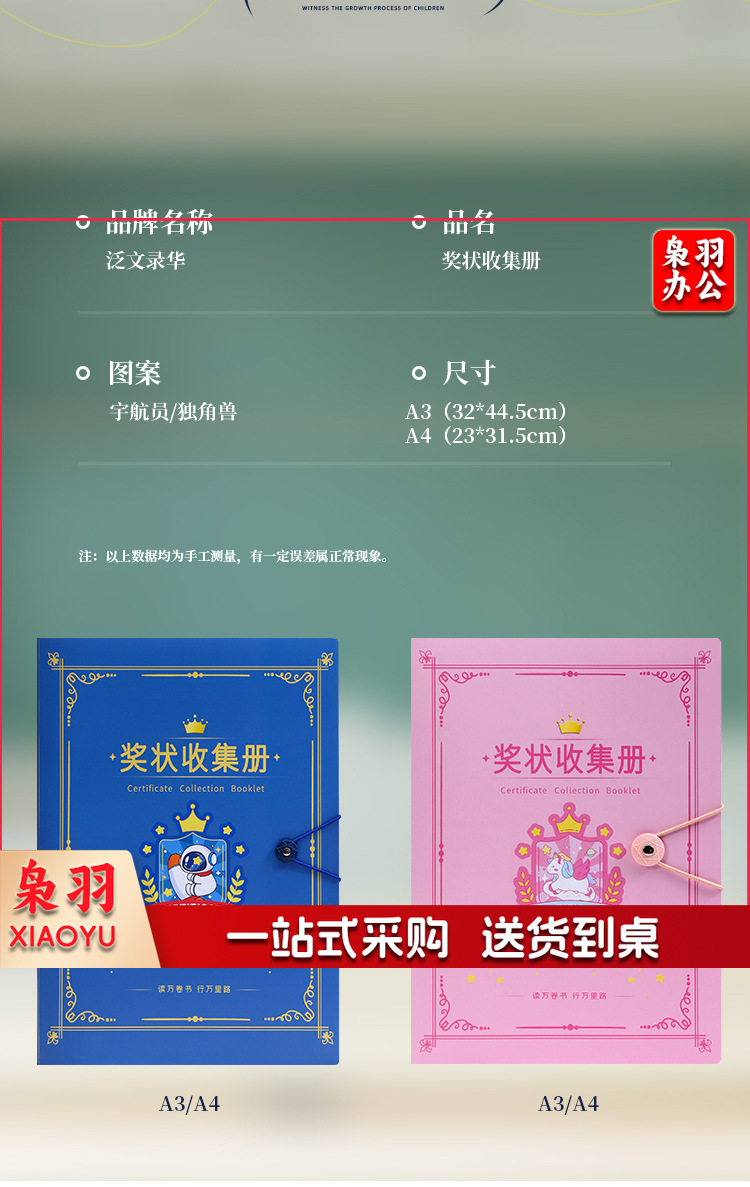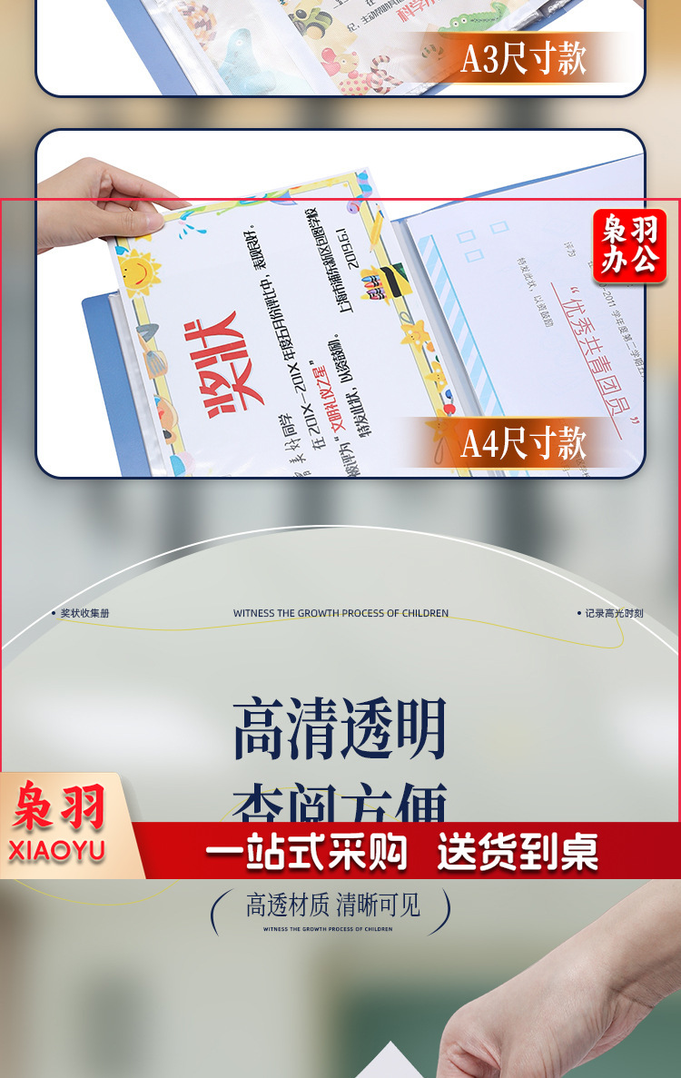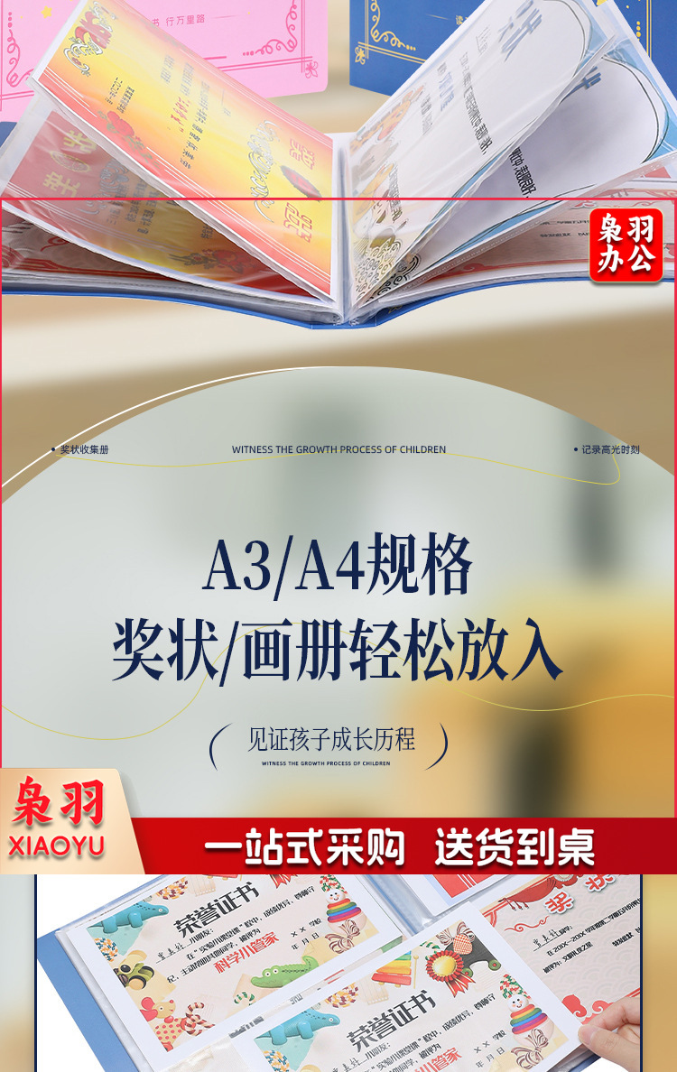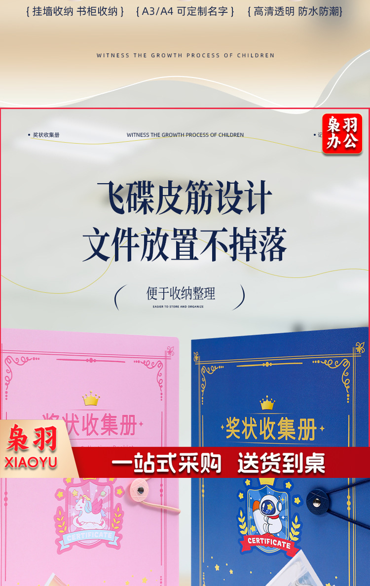 A3A 4奖状收集册可挂墙奖状收纳册男孩女孩资料册荣誉证书收纳神器