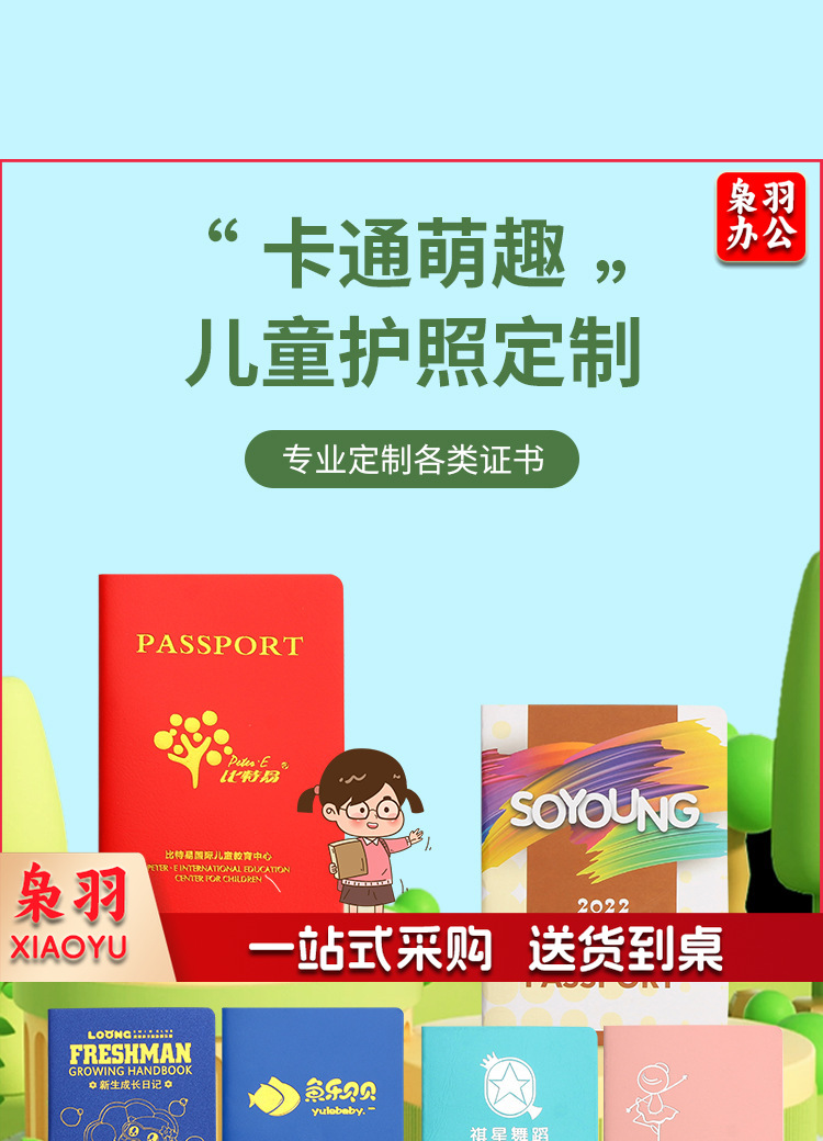 儿童护照早教培训幼儿园旅行积分收集盖章本荣誉英语会员证定制做(加单色LOGO 100本起)