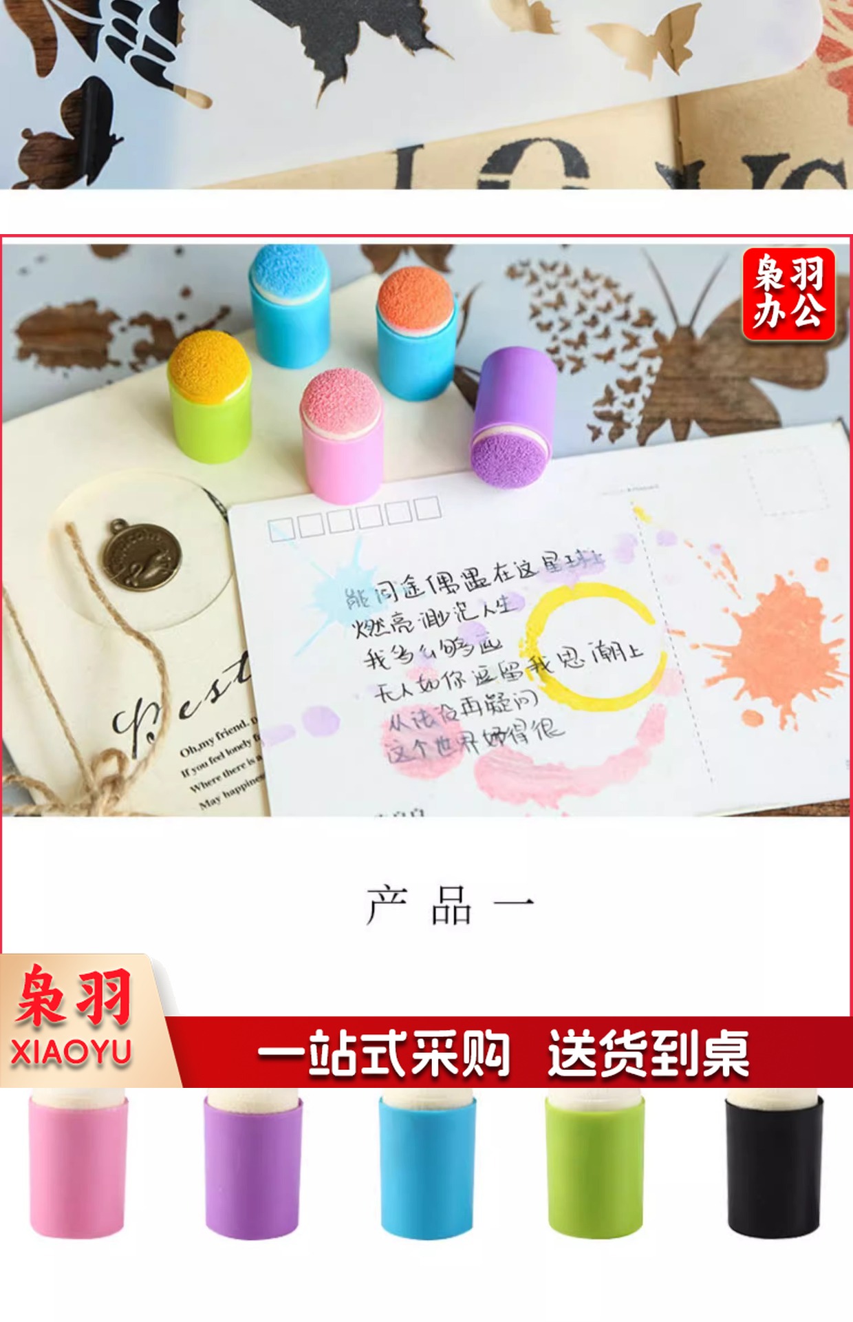 女孩手工diy玩具制作材料包手账印泥海绵手指套涂抹手抄报绘画板(印章小素材款(5张大印卡-211款图案))