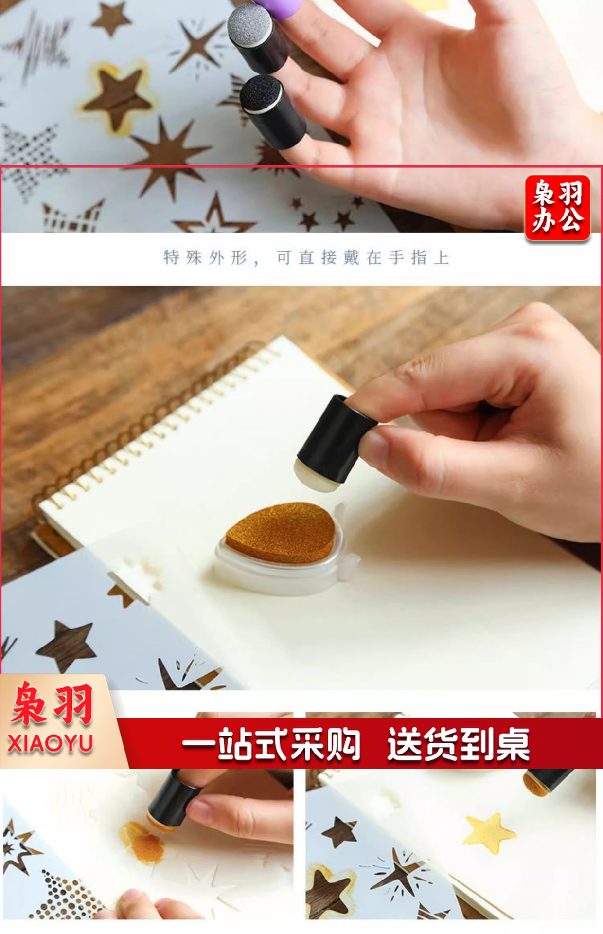 女孩手工diy玩具制作材料包手账印泥海绵手指套涂抹手抄报绘画板(印章圣诞款(5张大印卡-95款图案))