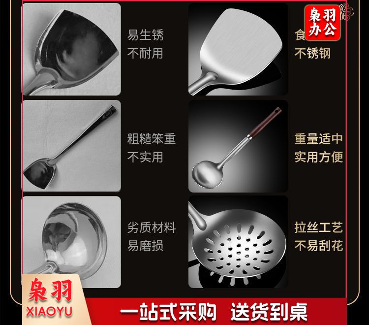 加厚不锈钢锅铲炒菜铁铲子家用厨房防烫炒菜炒勺漏勺煎铲厨具套装(加厚不锈钢漏勺★优质款)