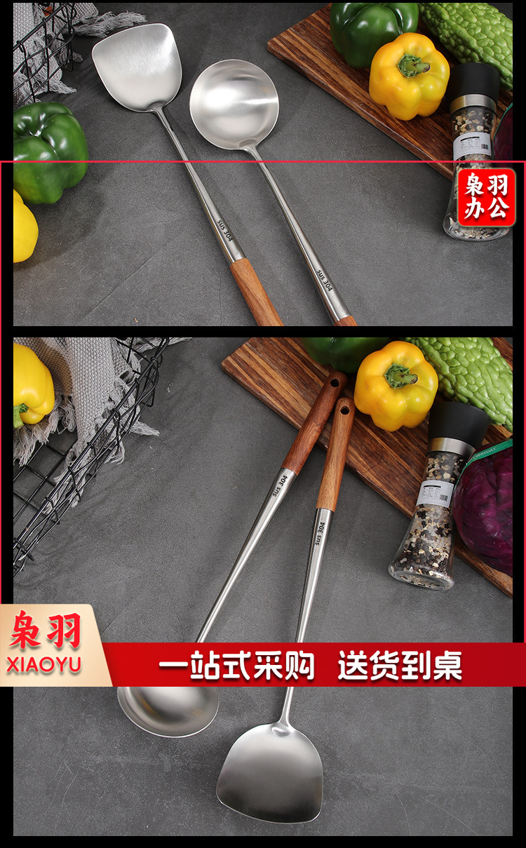 厨房长柄花梨木304锅铲用具家用木柄不锈钢厨具烹饪炒铲炒勺铲子(加长款304花梨木勺)