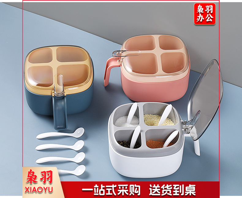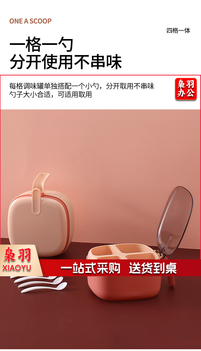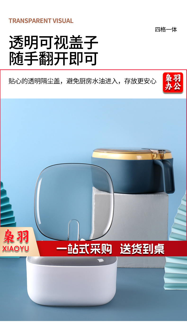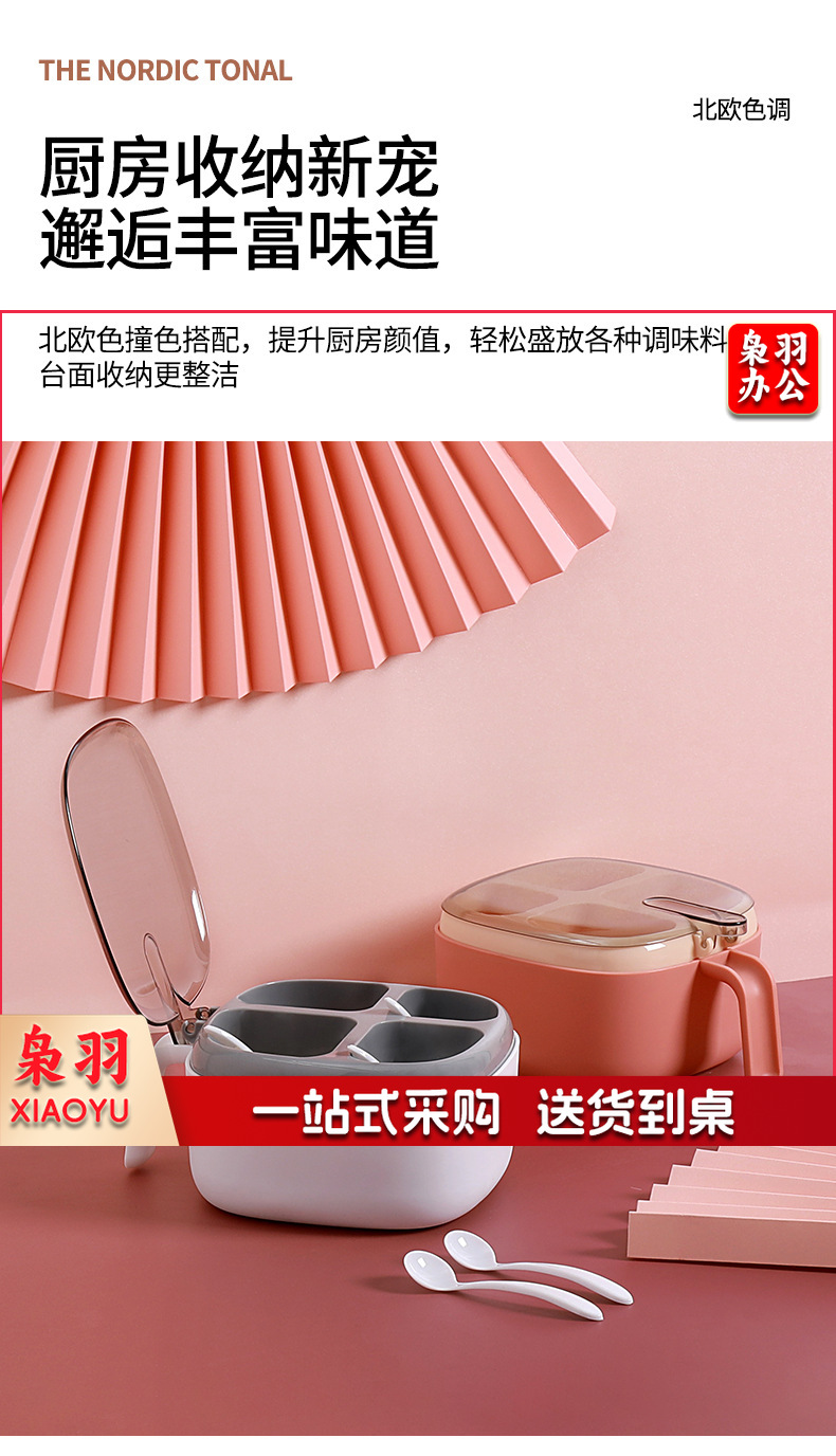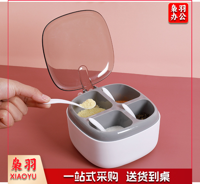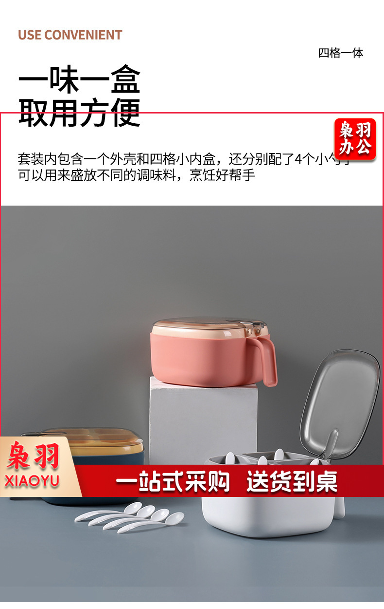 四格调料盒厨房用品撞色透明盖子带勺子按压式调味盒放盐味精佐料(素雅灰【限价/带防伪标】+四个勺子)
