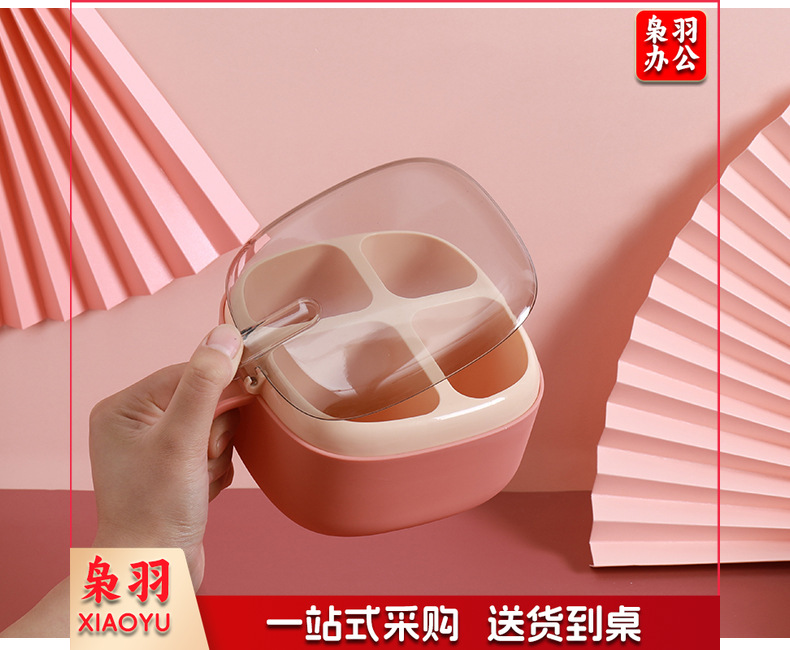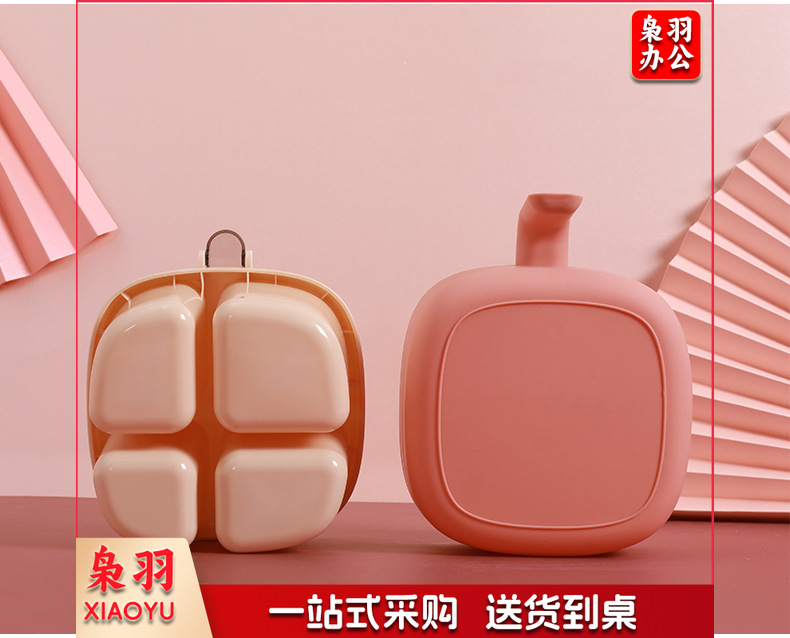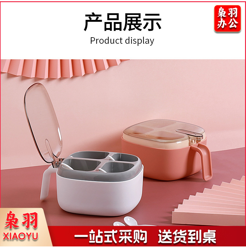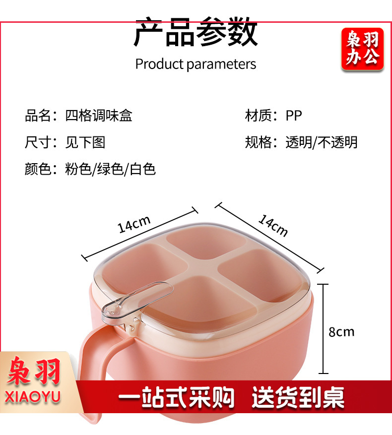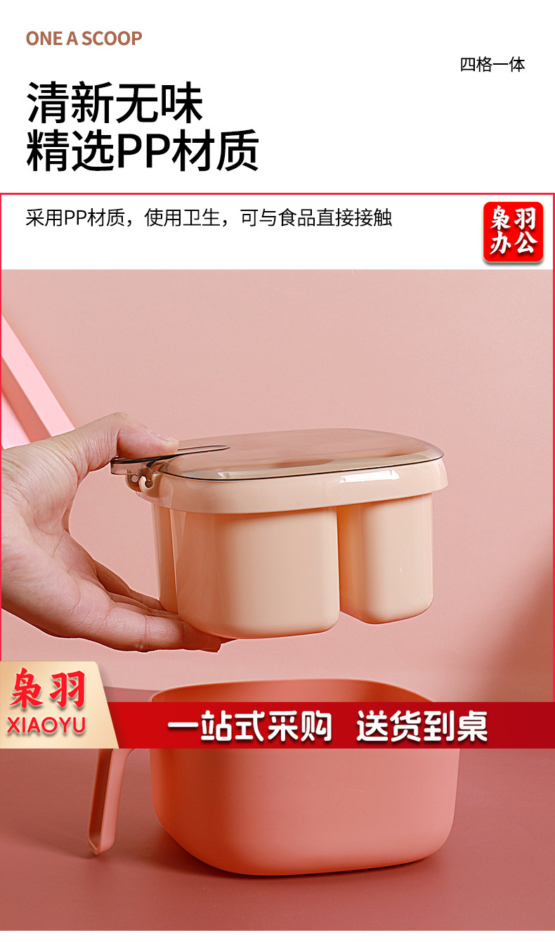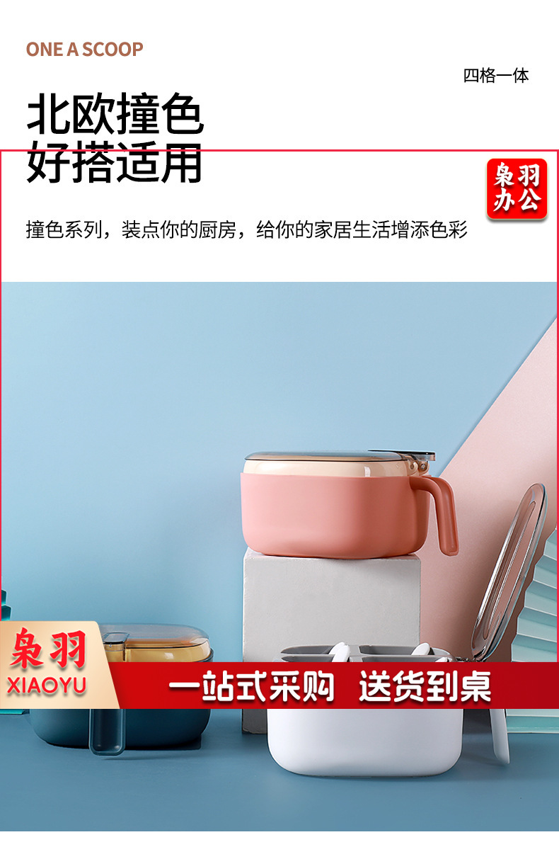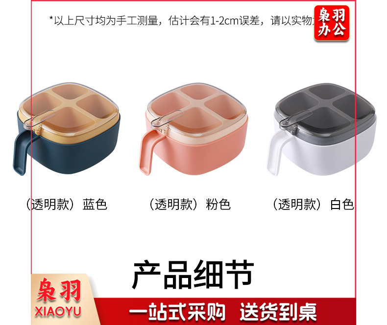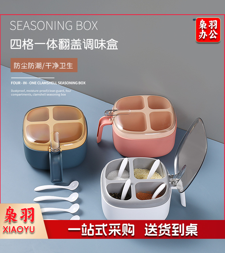 四格调料盒厨房用品撞色透明盖子带勺子按压式调味盒放盐味精佐料(素雅灰【限价/带防伪标】+四个勺子)