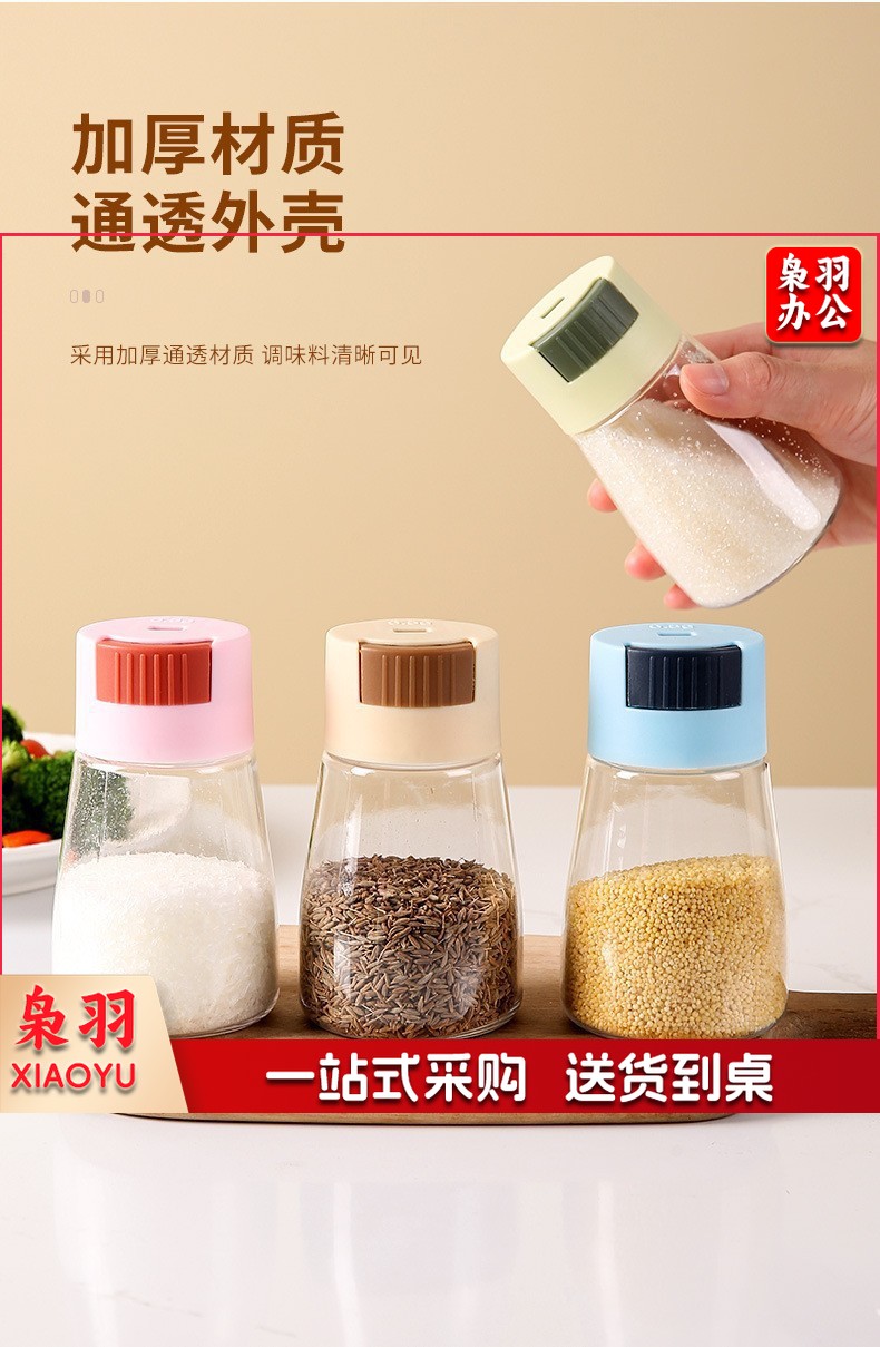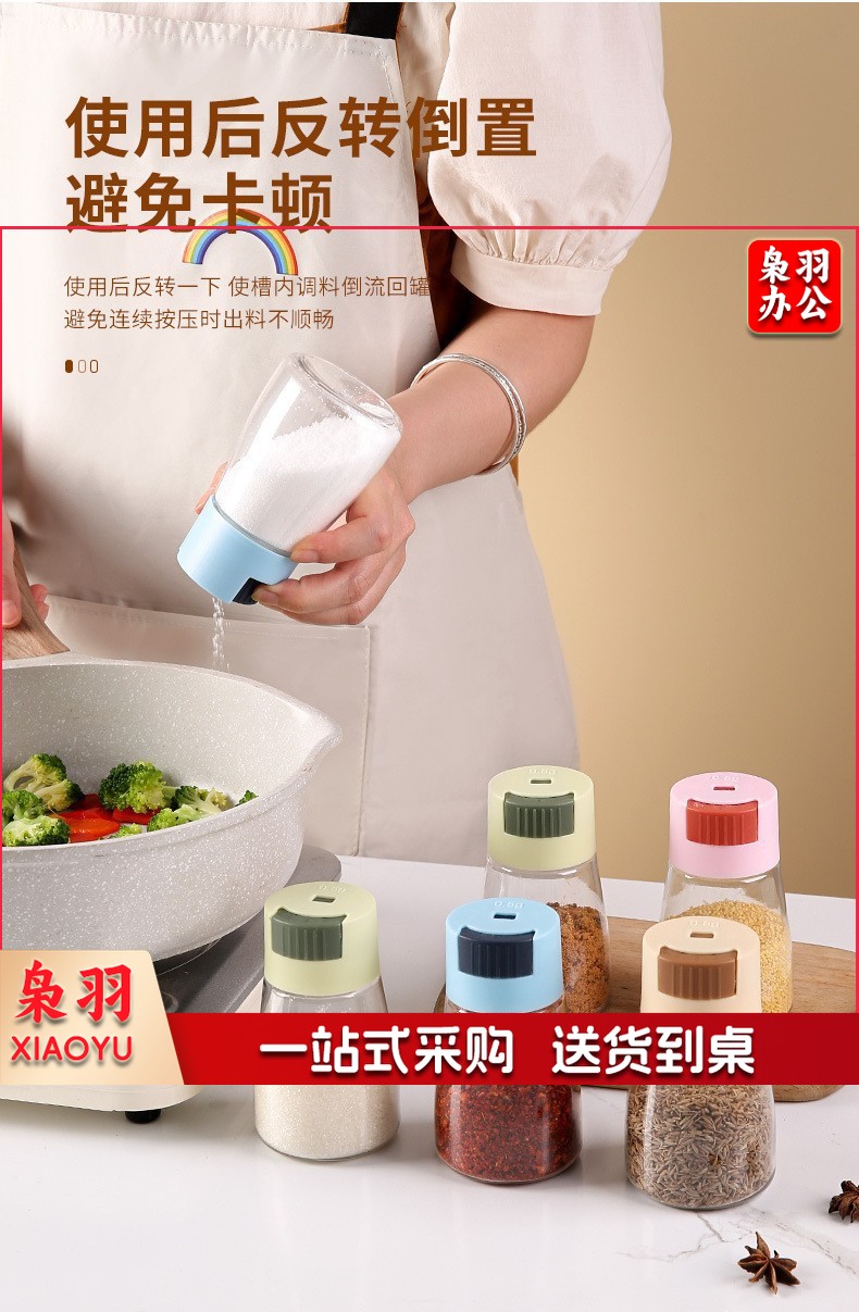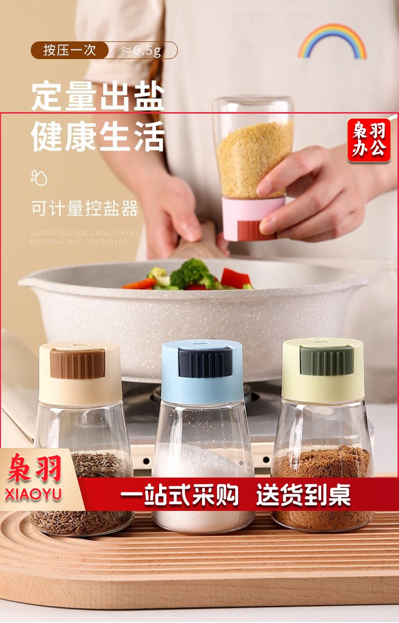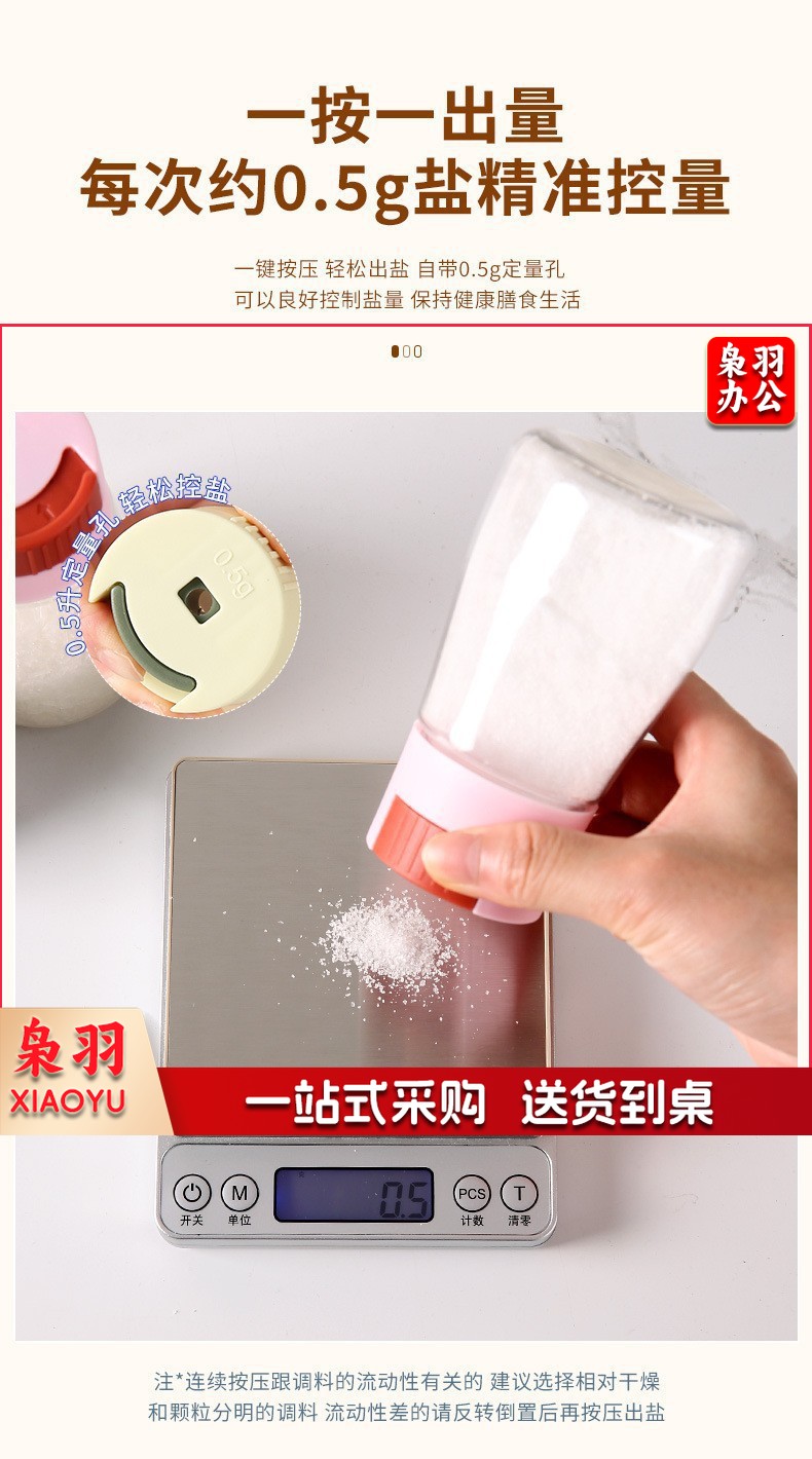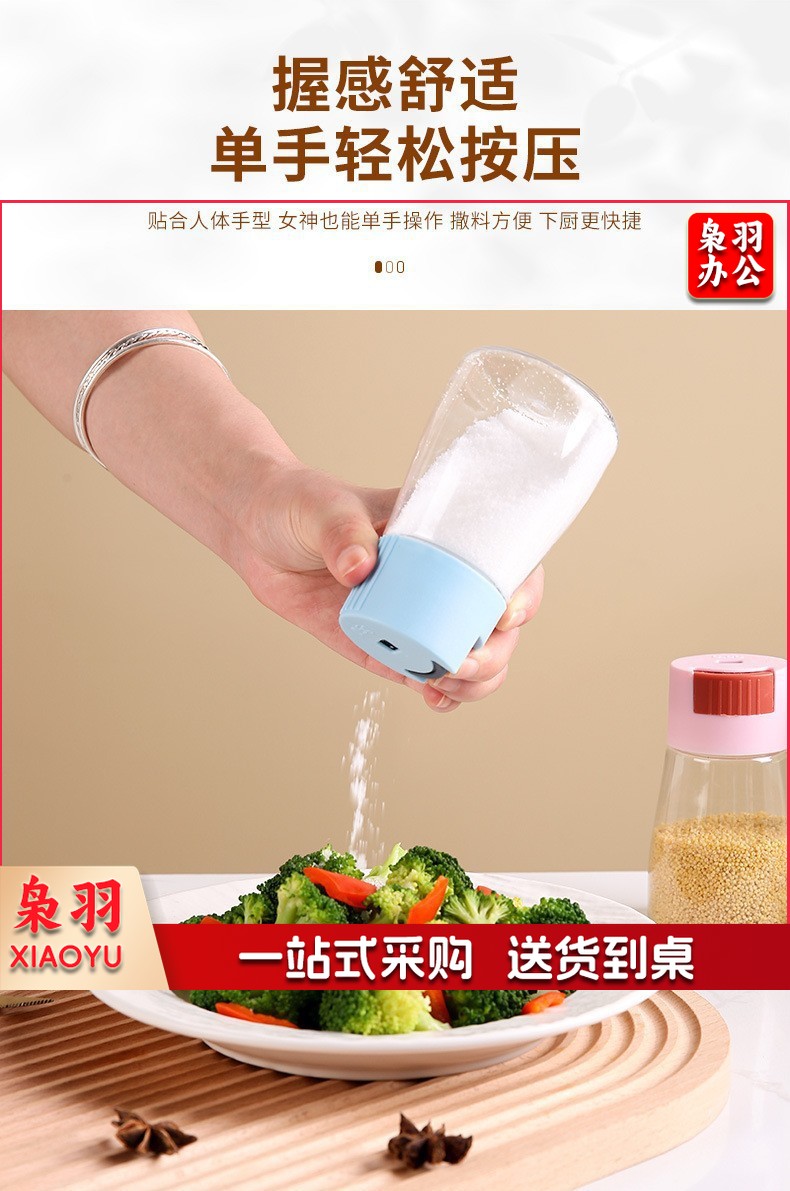 新款控盐瓶家用调料瓶按压式调味罐收纳调料盒盐罐调料罐厨房用品( 控盐瓶--颜色随机 1)
