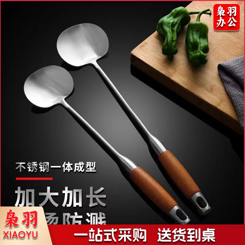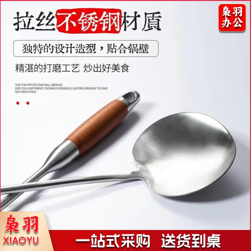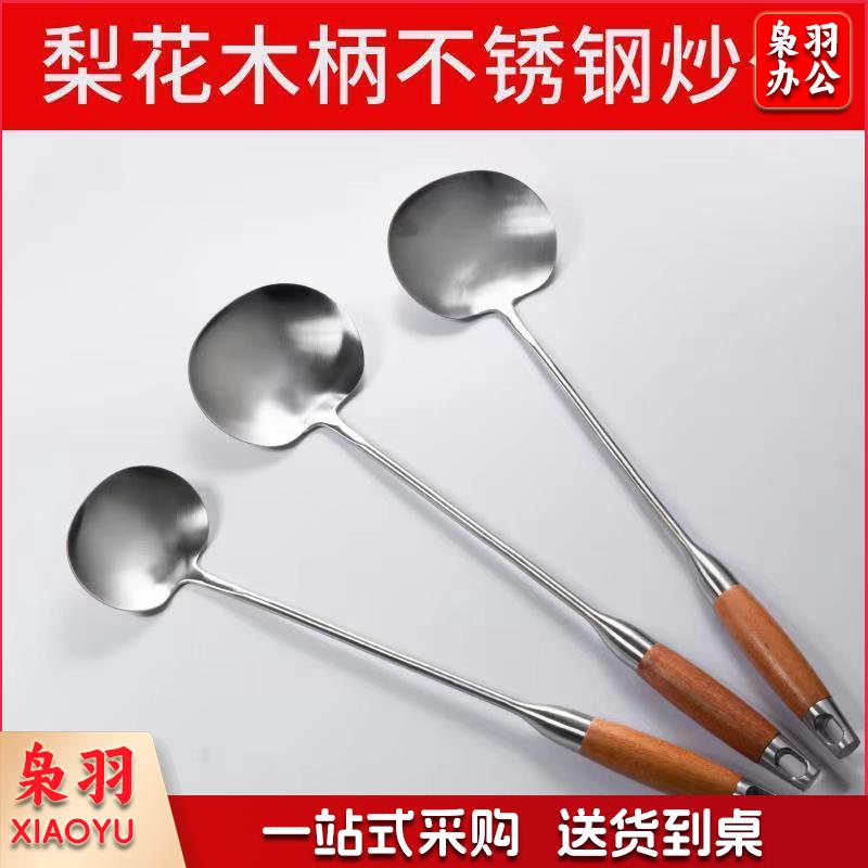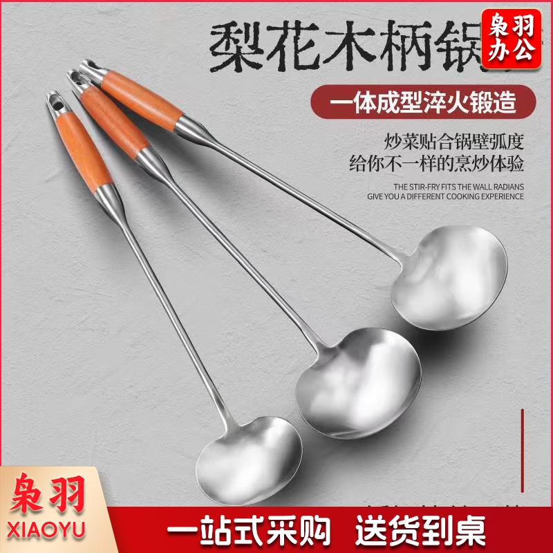炒菜勺锅铲不锈钢铲子汤勺厨师家用打菜勺长柄厨具烹饪勺加厚炒勺(中号花梨木手柄)