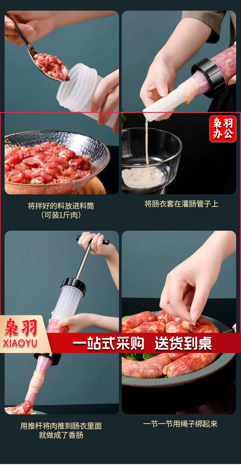 灌肠器手动家用塑料灌肠机器大号腊肠制作手推厨房工具灌香肠机器(大号手推式灌肠器一套)