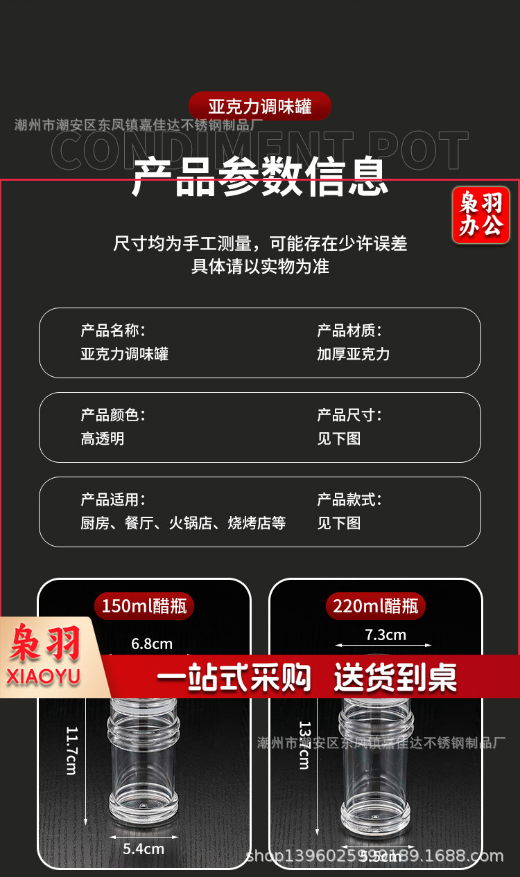 家用亚克力调料罐塑料酱油瓶调味瓶醋壶辣椒罐餐厅商用厨房用品30个起拍