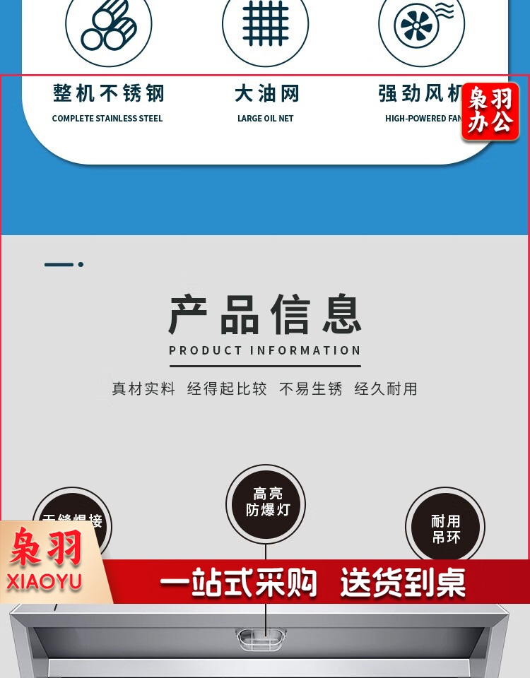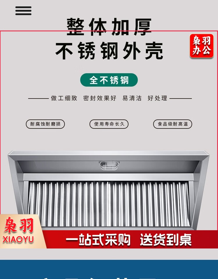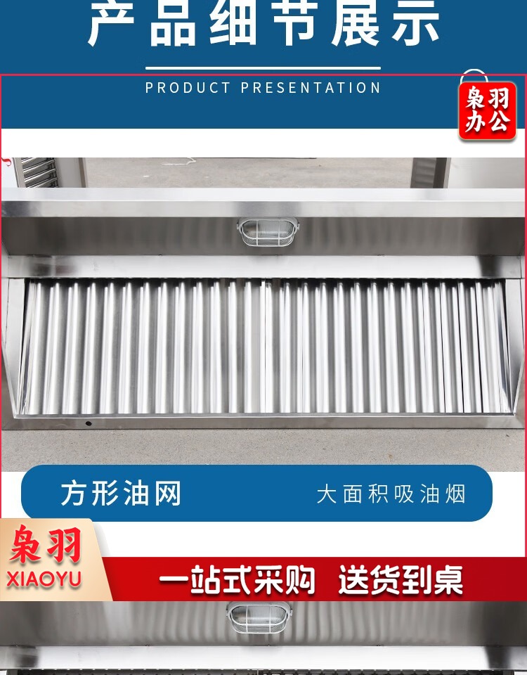 不锈钢油网烟罩(带照明灯)、尺寸可、厨房家电配件