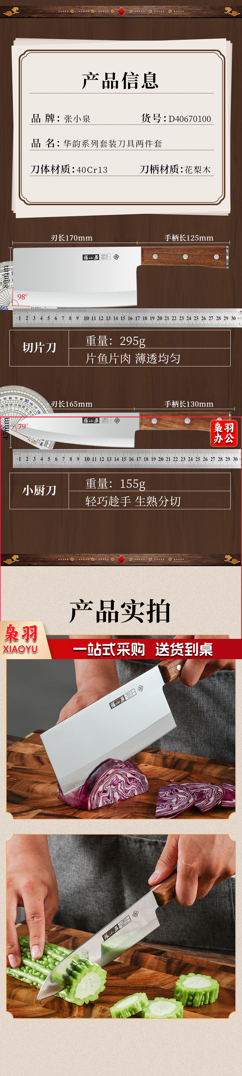 张小泉 D40670100 华韵2套装 家用不锈钢菜刀切片刀水果刀切菜刀厨具组合