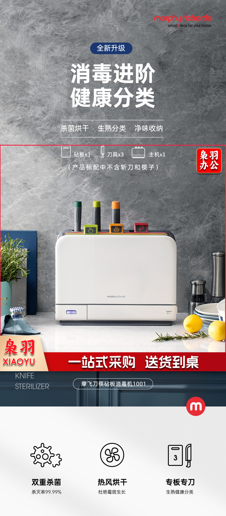 摩飞电器(Morphyrichards)消毒刀架砧板刀具消毒机家用小型筷子筒紫外线消毒机烘干器 菜板分类厨具MR1001