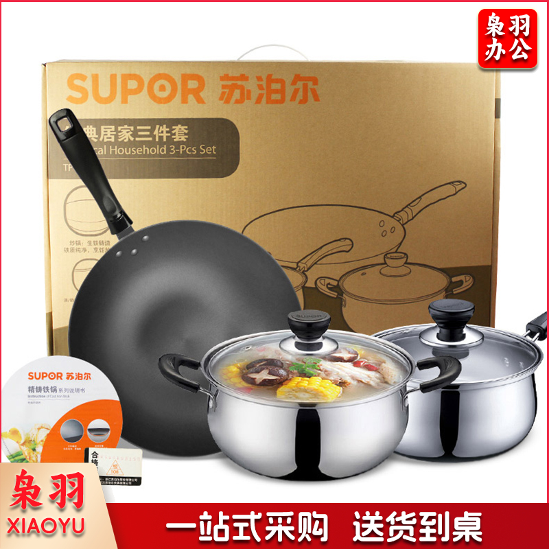 苏泊尔(SUPOR)TP1615K 经典居家三件锅具套装生铁锅汤锅奶锅燃气电磁通用厨具套装