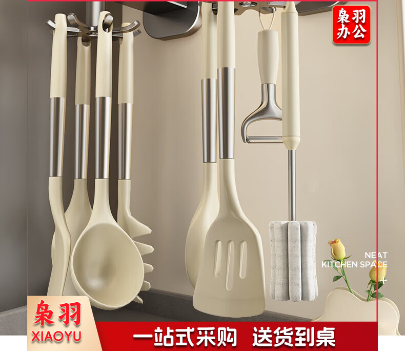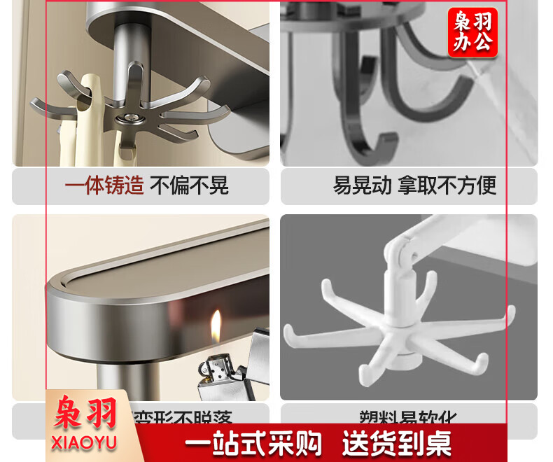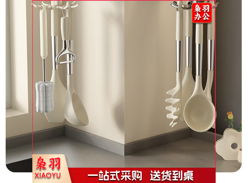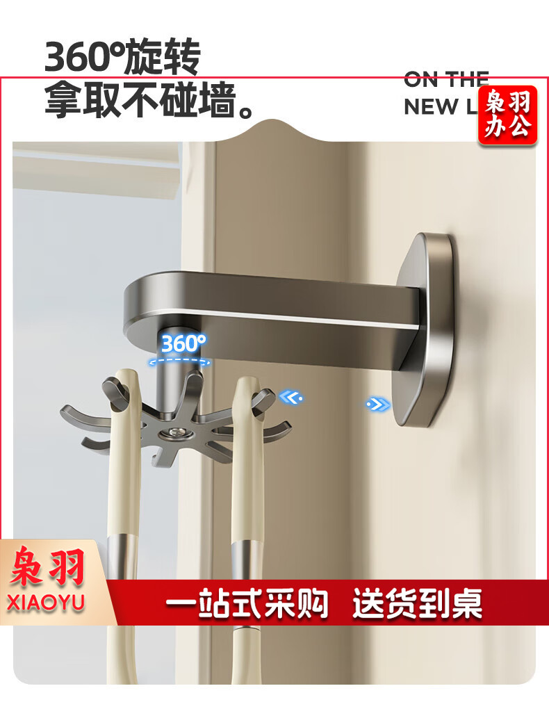 厨房旋转挂钩免打孔壁挂墙上厨具锅铲菜板勺子铲子收纳挂架 吸盘枪灰【加厚360度旋转】8钩