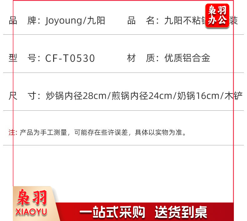 九阳 锅具套装居家不粘炒锅煎锅汤锅三件套电磁燃通用厨具套装CF-T0530