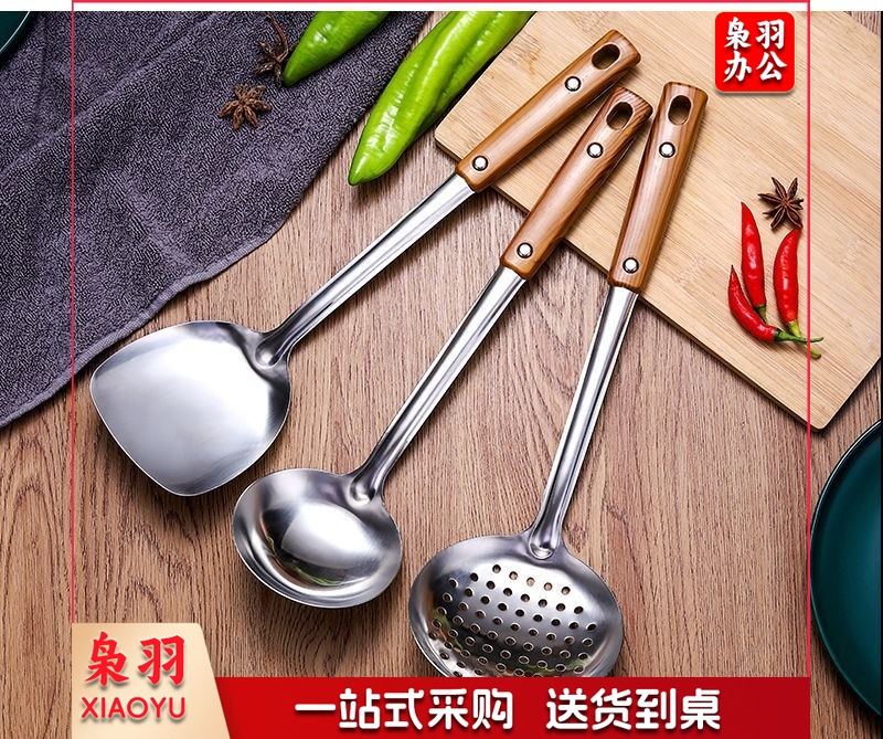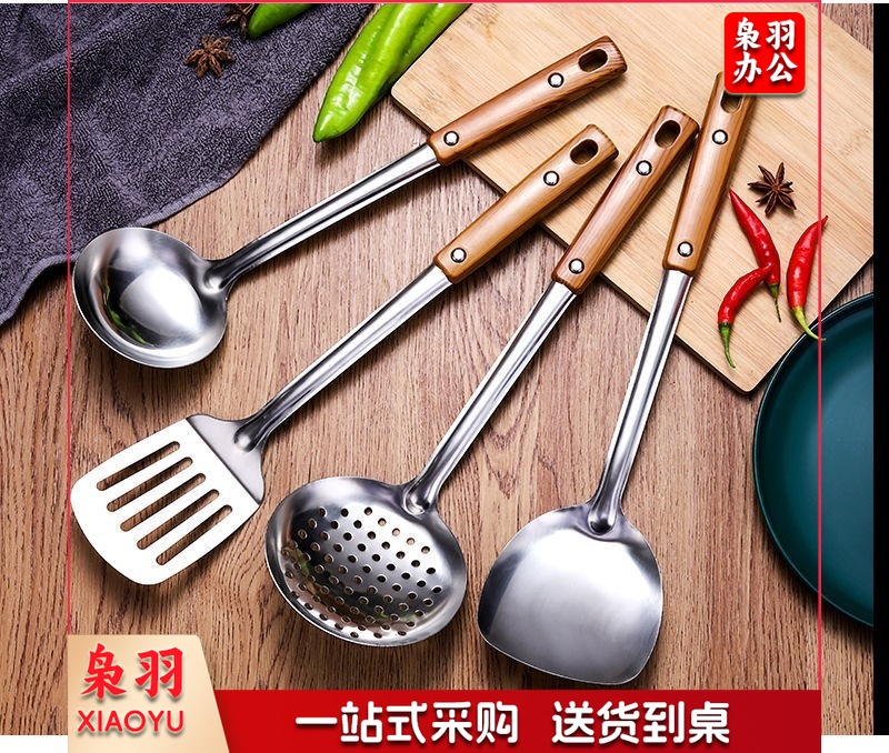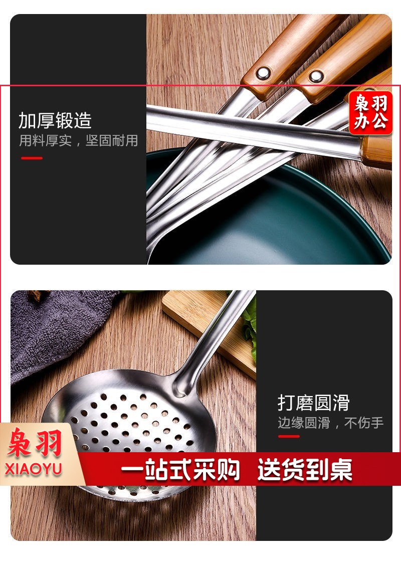 LQ142 锅铲套装家用漏勺炒菜铲子厨房汤勺厨具勺子不锈钢煎铲漏铲饭勺 全套勺铲