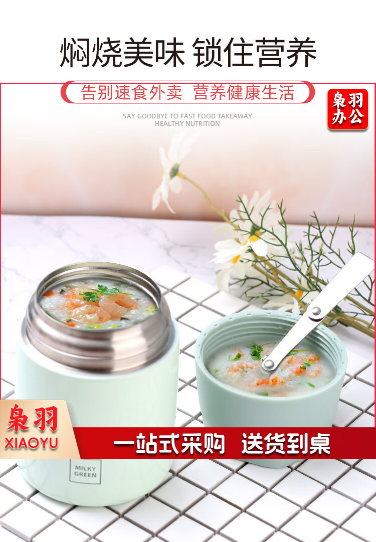 乐扣乐扣焖烧杯 大容量饭盒女便携家用真空304不锈钢焖粥8037保温壶 浅绿色 600ml