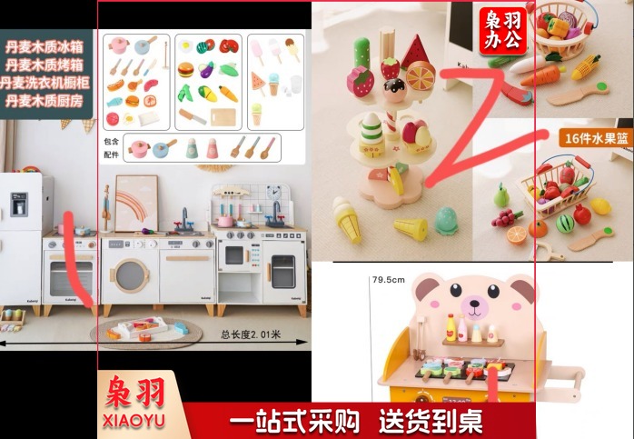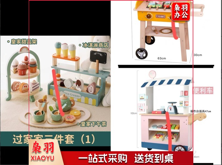 玩具详情:冰箱*1,洗衣机*1,厨房*1,橱柜*1,过家家三件套*1,冰激凌车*1