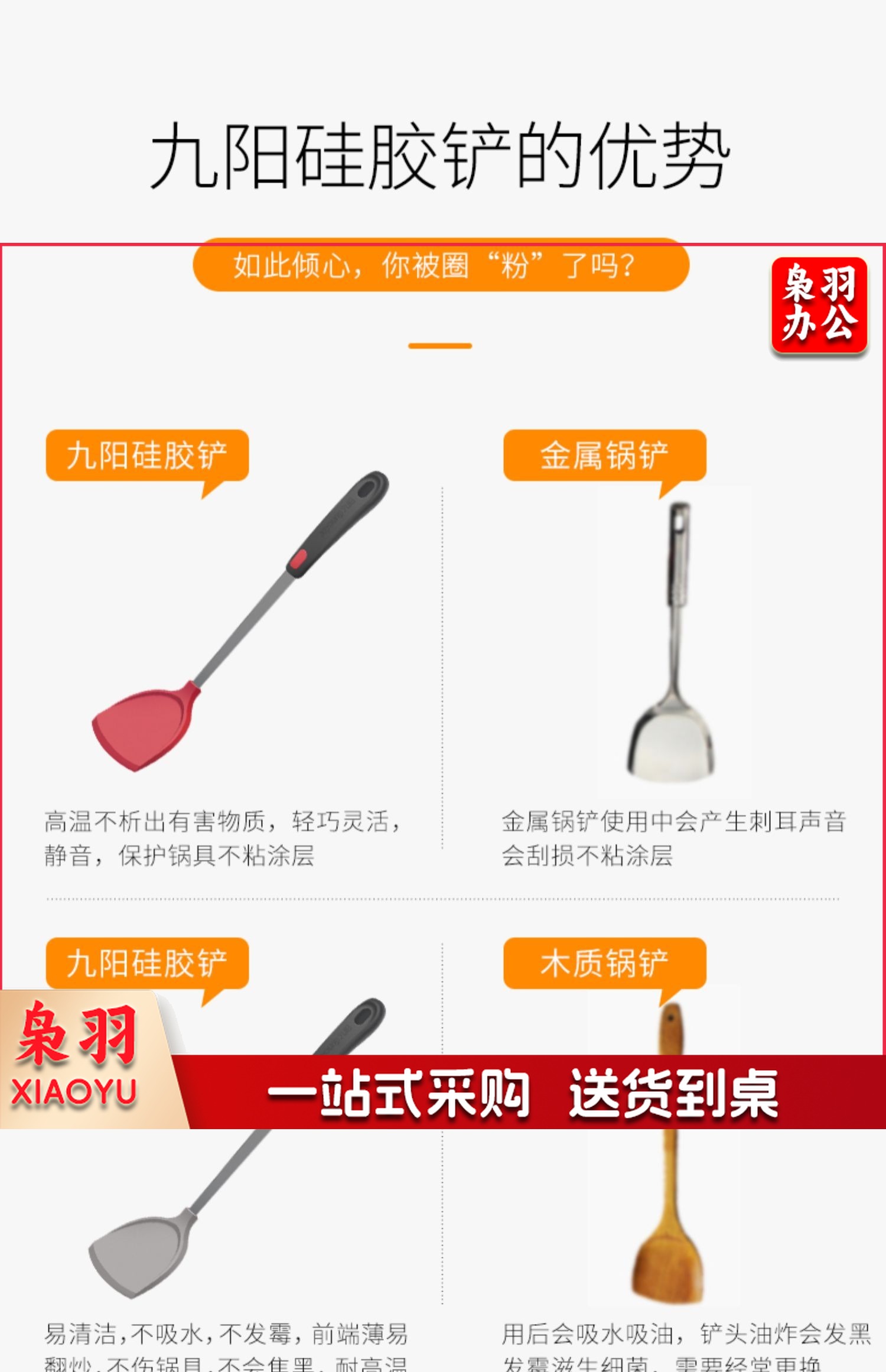 九阳/Joyoung 九阳不粘锅硅胶铲炒菜铲子耐高温家用不锈钢厨具专用护锅硅胶锅铲