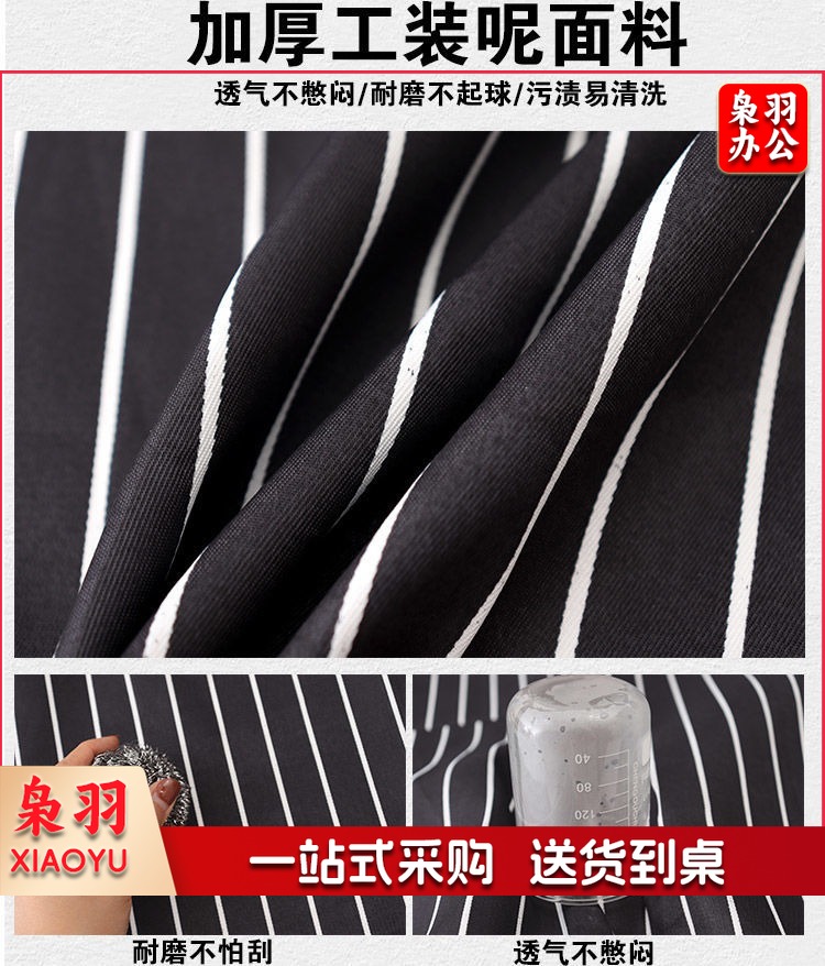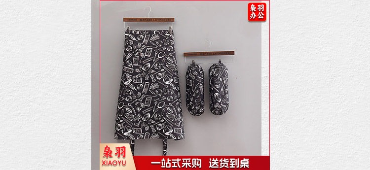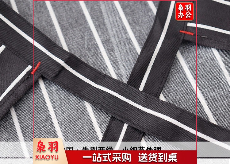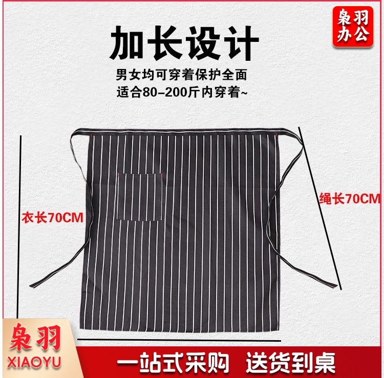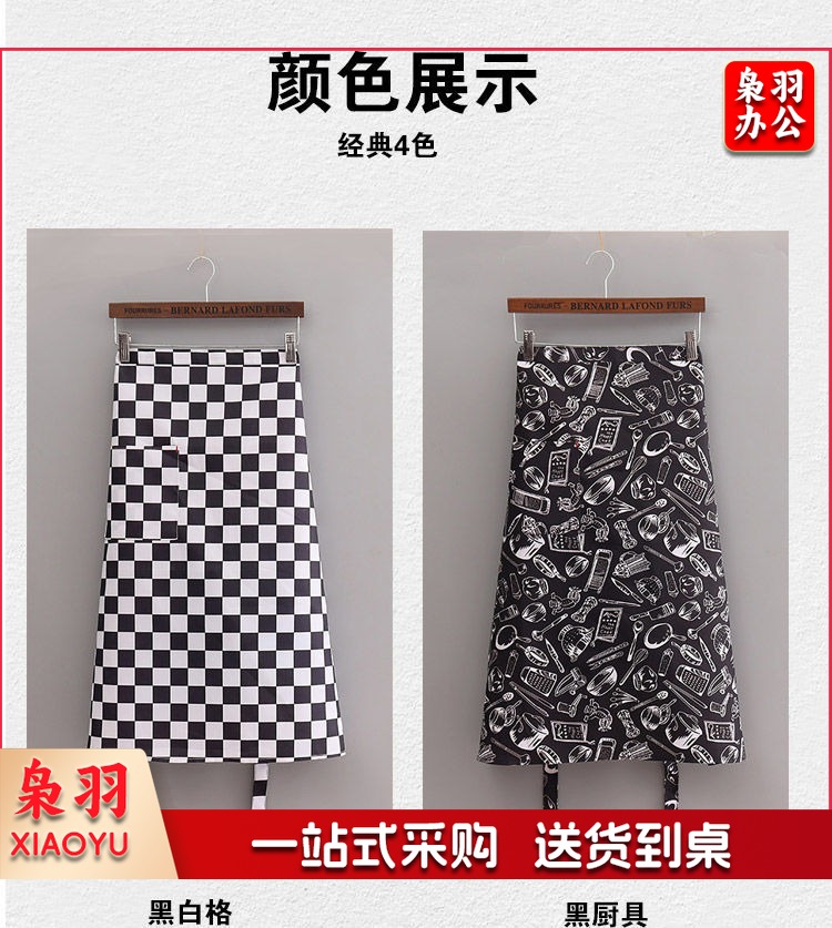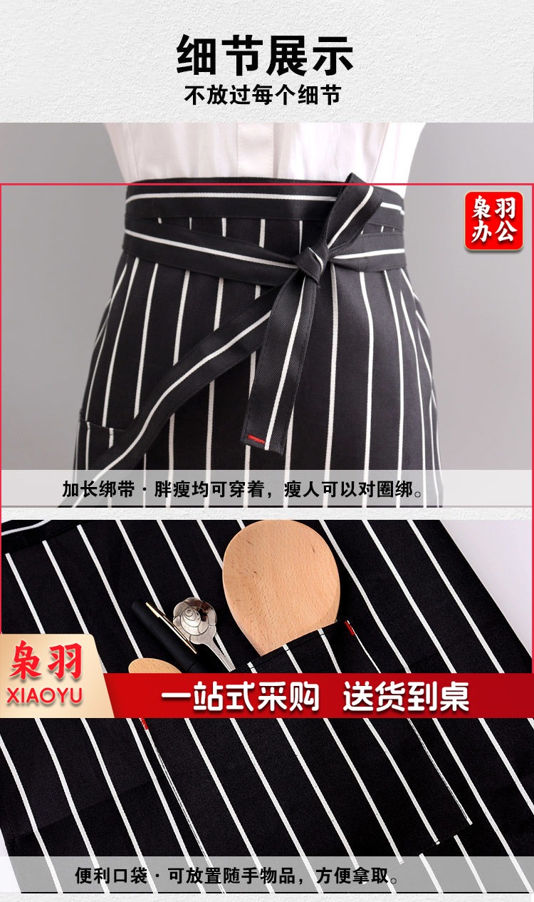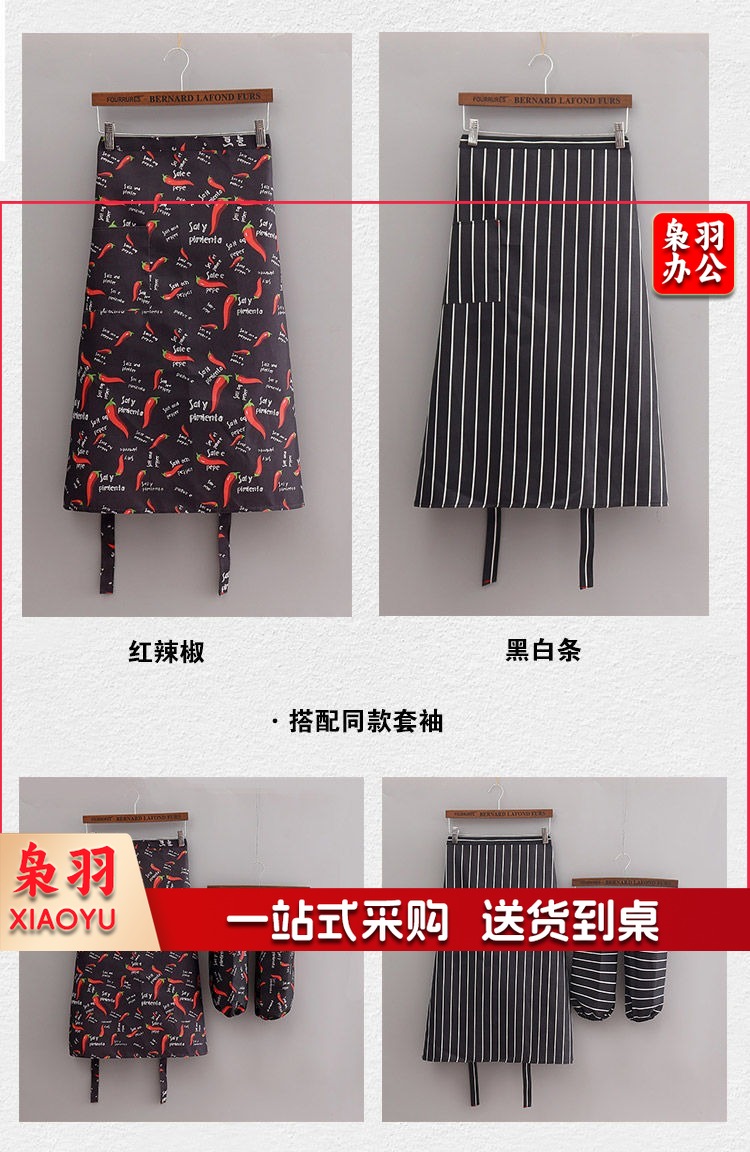 厨师工作服夏餐厅做饭加长饭店女围腰薄半截 601半截工装呢透气黑厨具+套袖 围裙