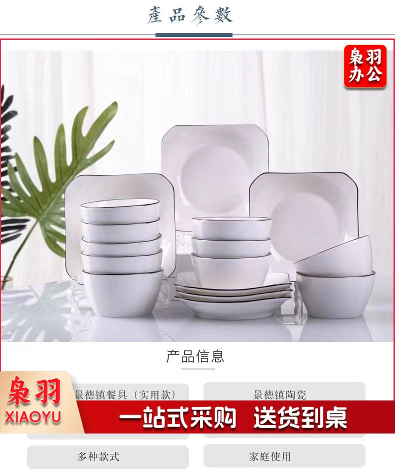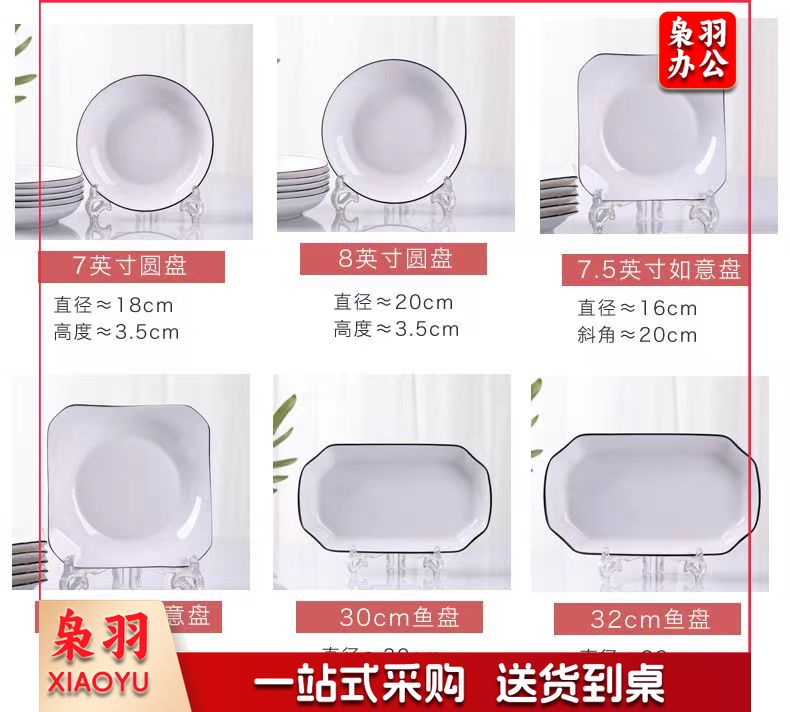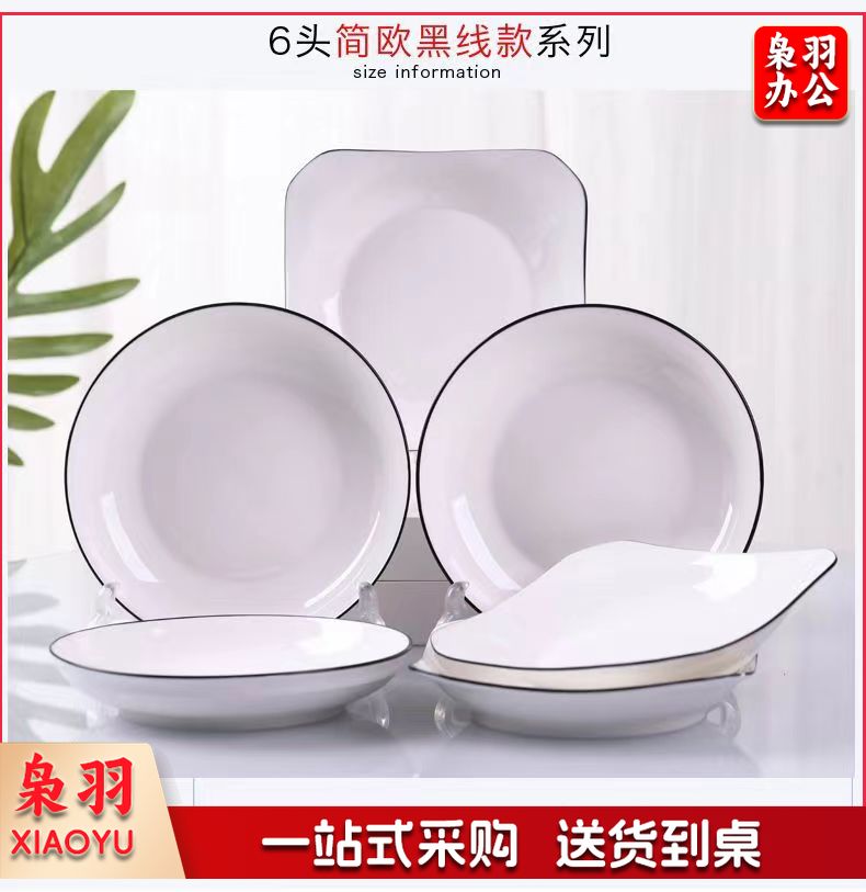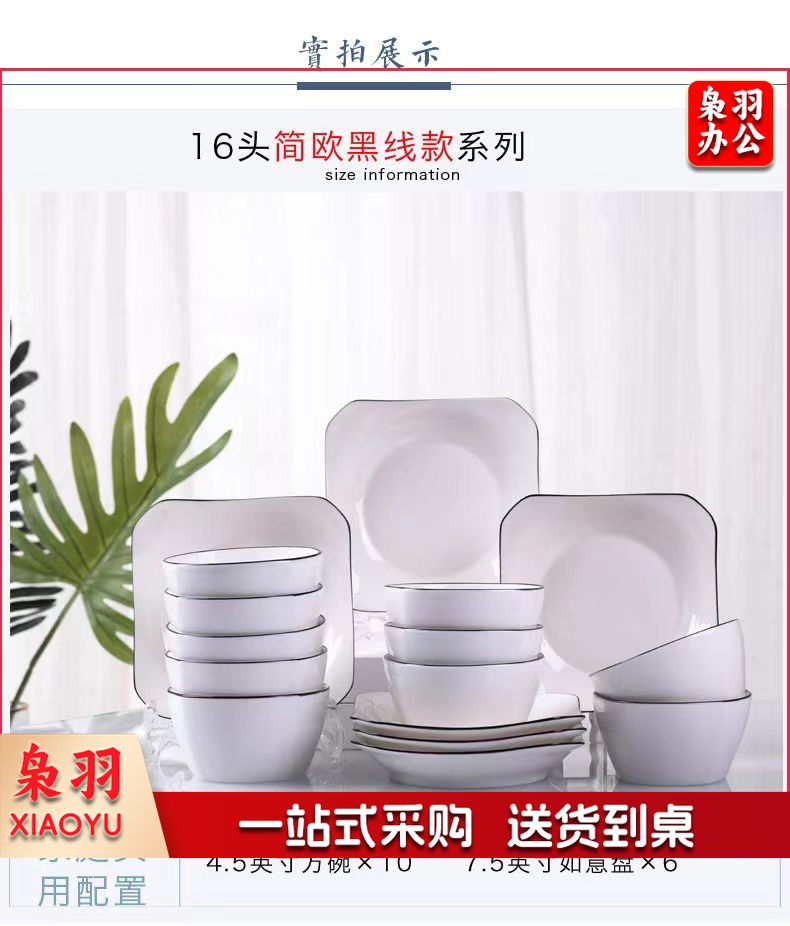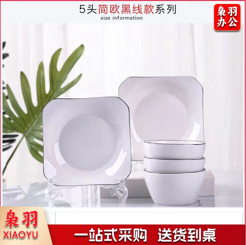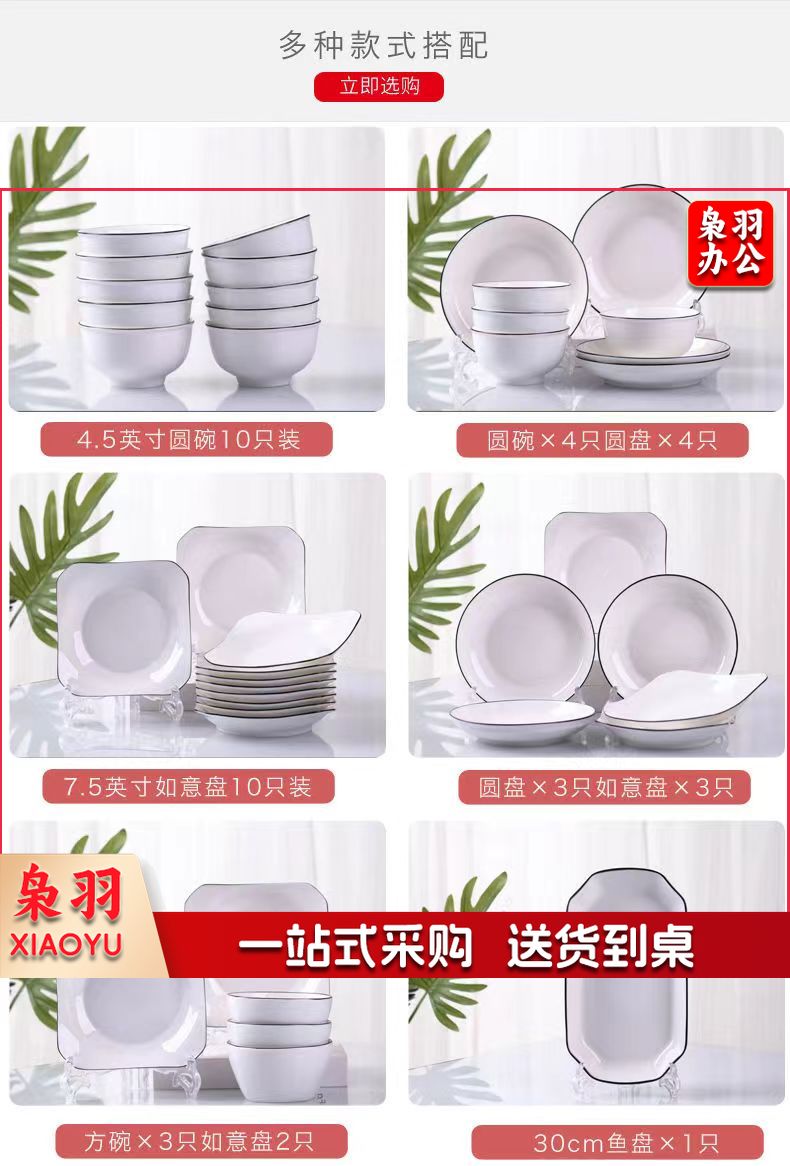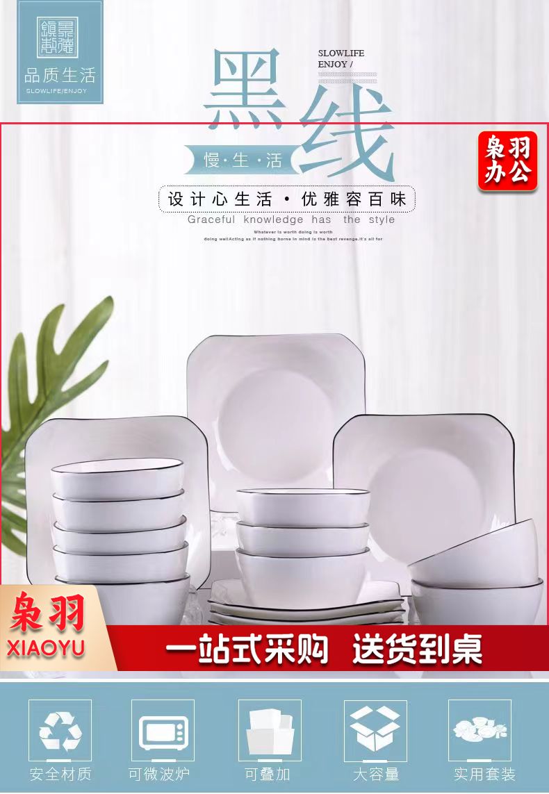 陶瓷碗碟套装 北欧现代中式简约碗盘碟创意轻奢陶瓷餐具套装组合 黑线简约 55件套其他厨房用具