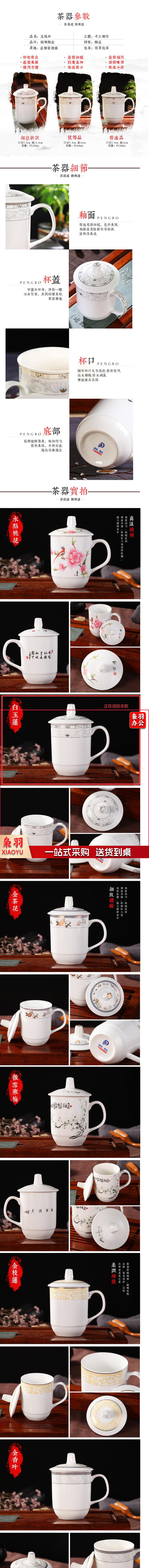 陶瓷茶杯带盖水杯会议杯家茶瓷器杯-白玉莲 10只装
