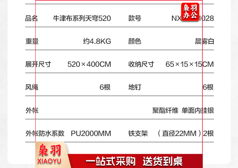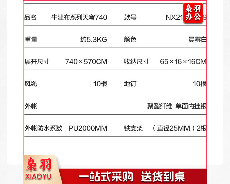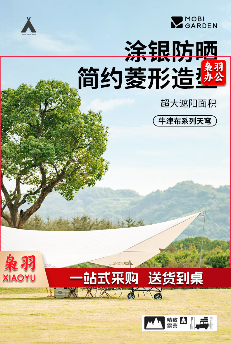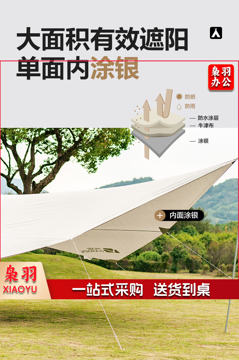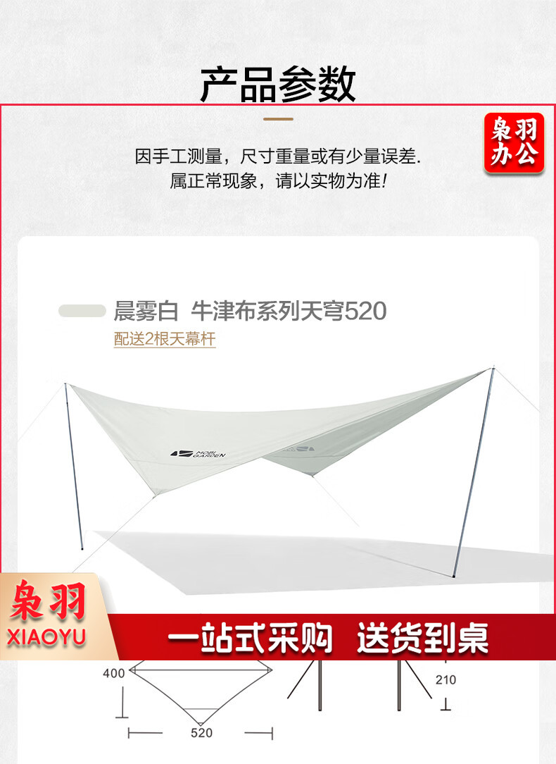 户外露营防雨遮阳防晒牛津布菱形天幕520 NX21661028 晨雾白