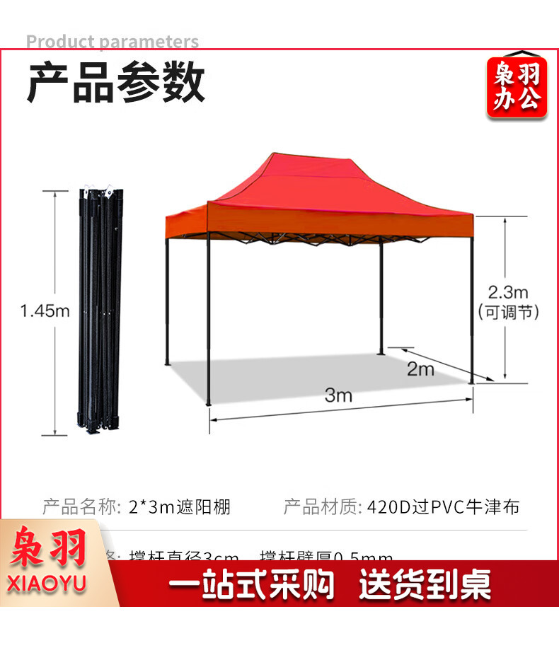 棚遮阳棚 户外加厚遮阳折叠式四脚太阳伞停车棚 2*3红色 jat-zyp0172