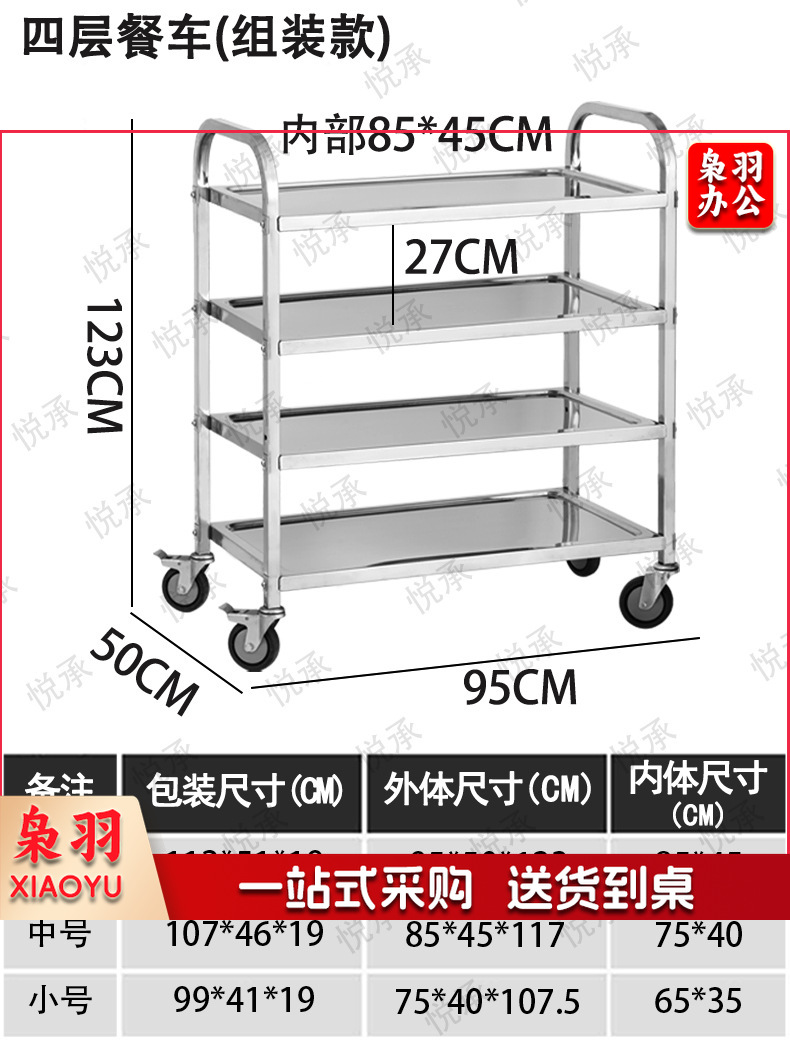 不锈钢餐车(大号二层餐车0.8【304盘】)上菜车餐厅酒店商用饭店收碗车加厚移动茶楼手推车