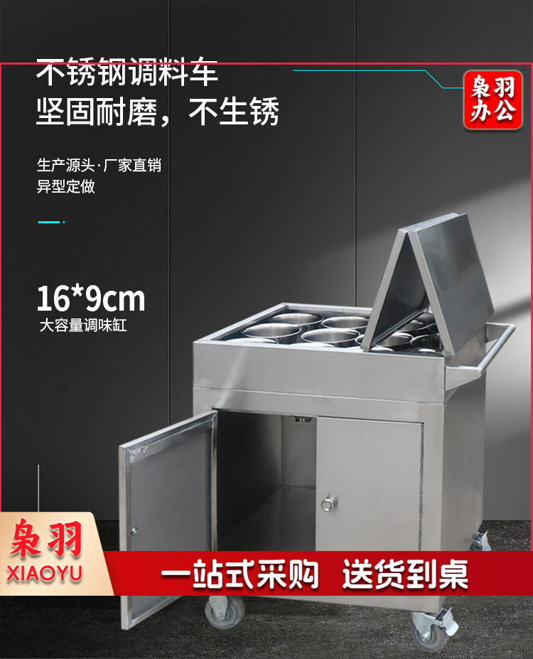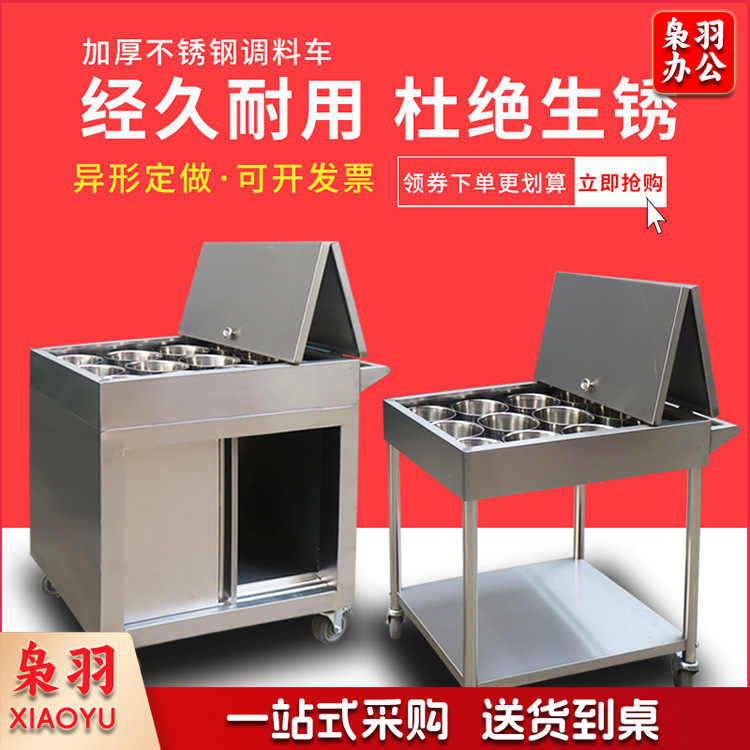 厨房调味车加厚(拉门款静音刹车12缸)不锈钢移动手推车调料台商用餐厅饭店不锈钢调料车