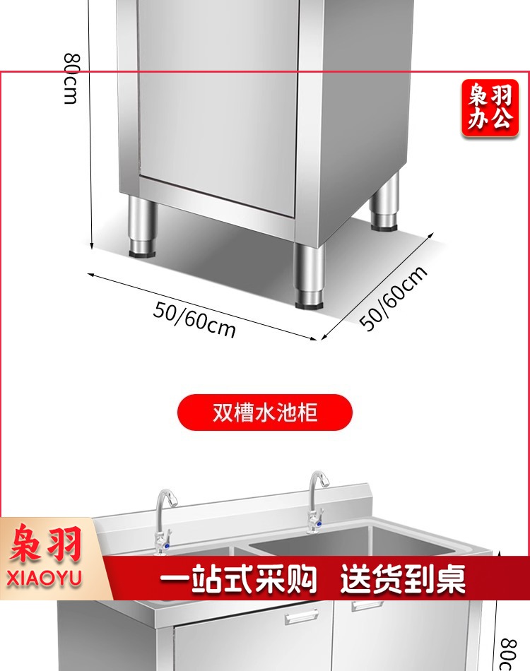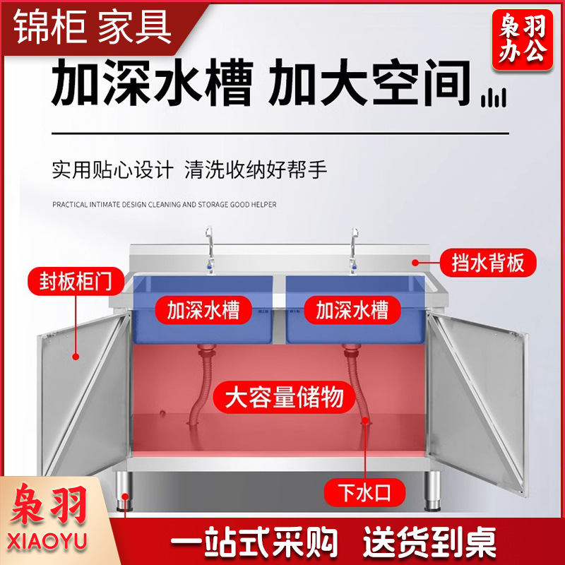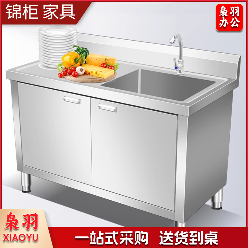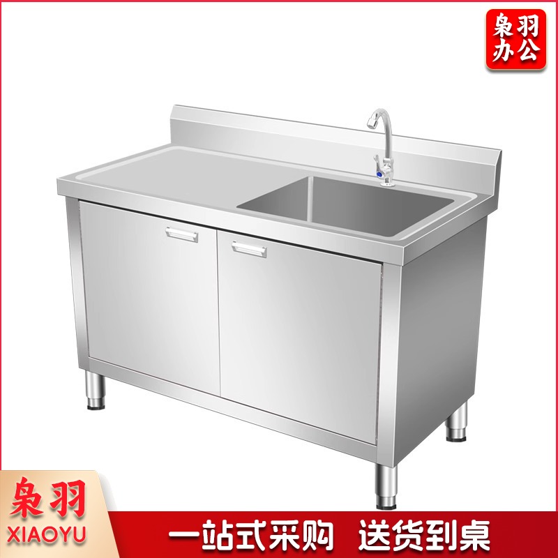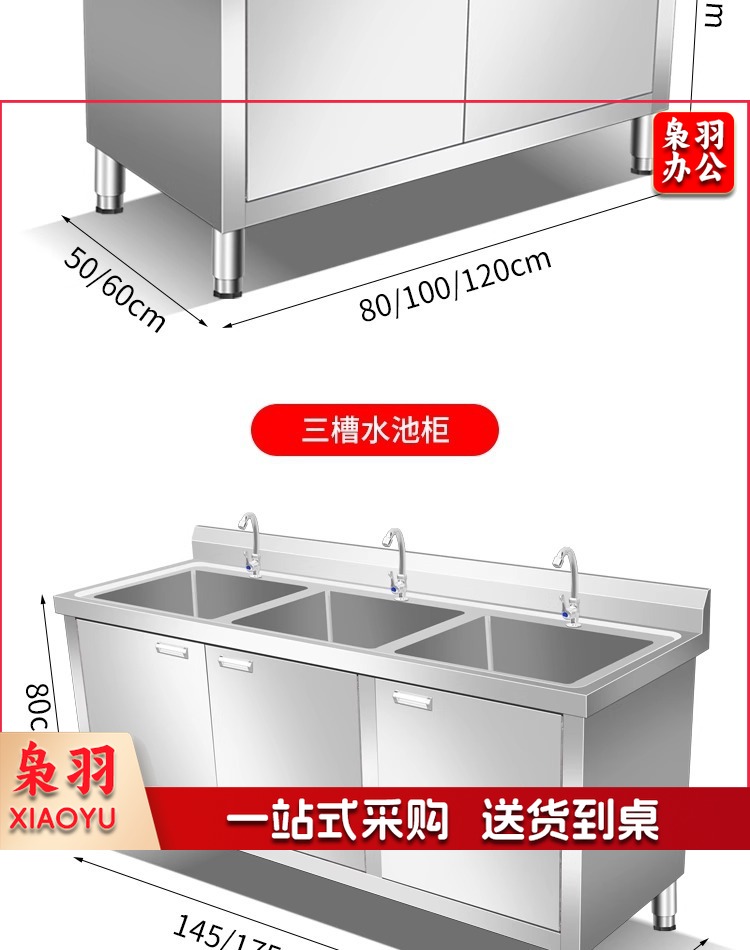 不锈钢水池柜一体式商用带平台橱柜洗碗池洗菜盆不锈钢水池柜([防锈]特厚款 145*50*80两侧水池中平台-送双温龙头套装)