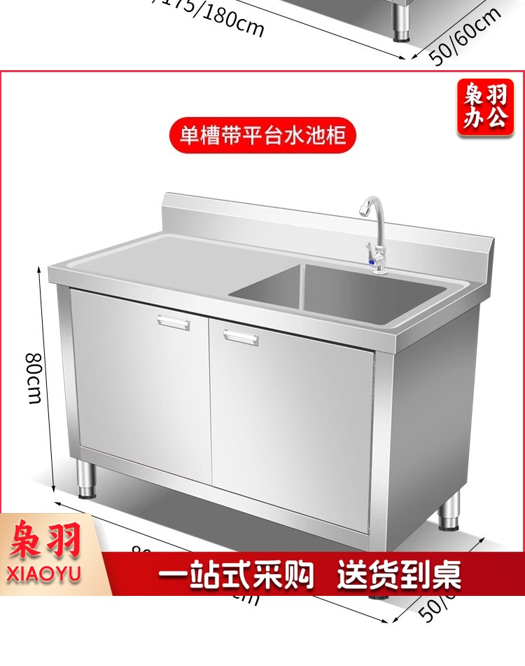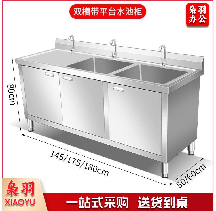 不锈钢水池柜一体式商用带平台橱柜洗碗池洗菜盆不锈钢水池柜([防锈]特厚款 120*60*80双池-送双温龙头套装)
