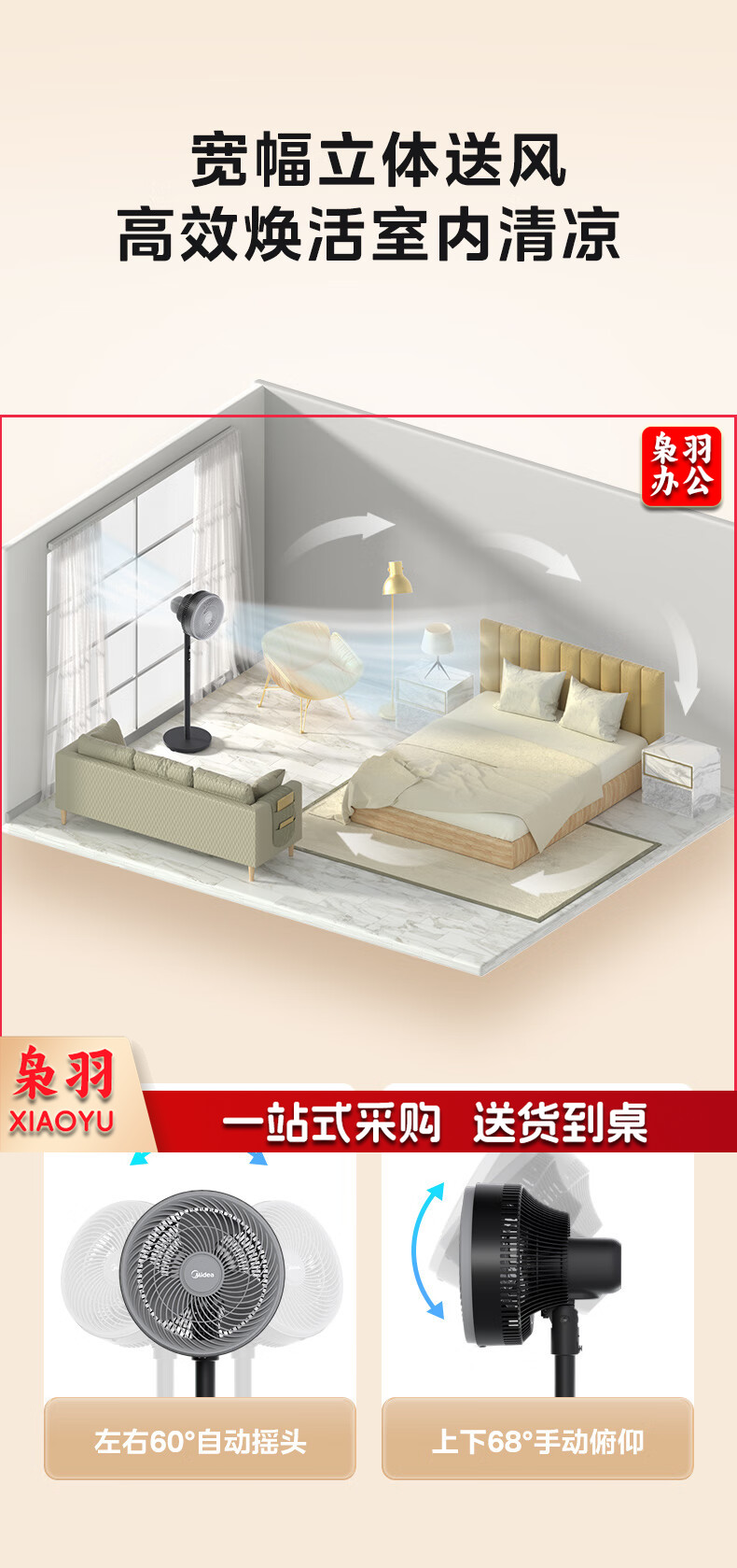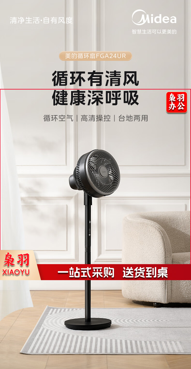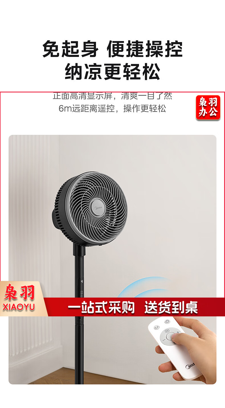 美的(Midea) 空气循环扇台地遥控摇头 大风量节能 FGA24UR 俯仰轻音自然风对流家用 黑色